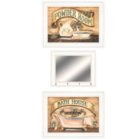 The set of three bath & powder room 3-piece vignette 4 white framed print wall art is the perfect decorative accessory for your home. This print is a visual artistic expression that allows you to decorate your space in restyle. Reproduced for you on paper, this hanging accent will be a trendy and fashionable way to dress your walls. Hang on your wall to add up date and fashion decoration. Instantly liven up your space with this art that color brings you to your walls. 13. 'H x 15' W x 1' D