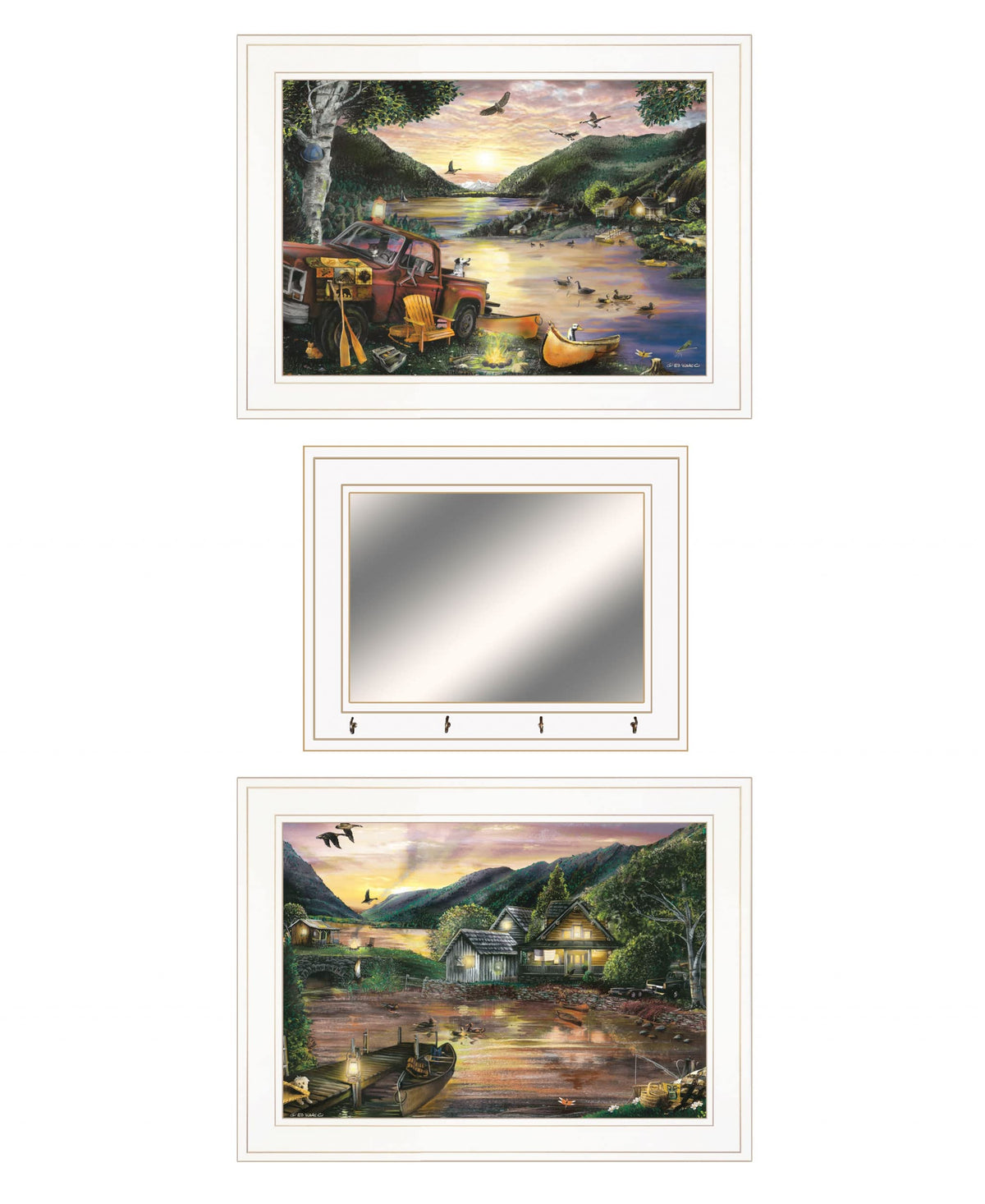 Add an air of fashion to your room and rejuvenate the space with this set of three lakefront camping 3-piece vignette 1 white framed print wall art. This print is a visual artistic expression that allows you to decorate your space in reproduced for you on paper, this hanging accent will be a trendy and fashionable way to dress your walls. Adding this hanging wall art to your space to make your room feel more attractive. This opportunity to create a focal point in the room with this wonderful wall decor option. 19' H x 15' W x 1' D