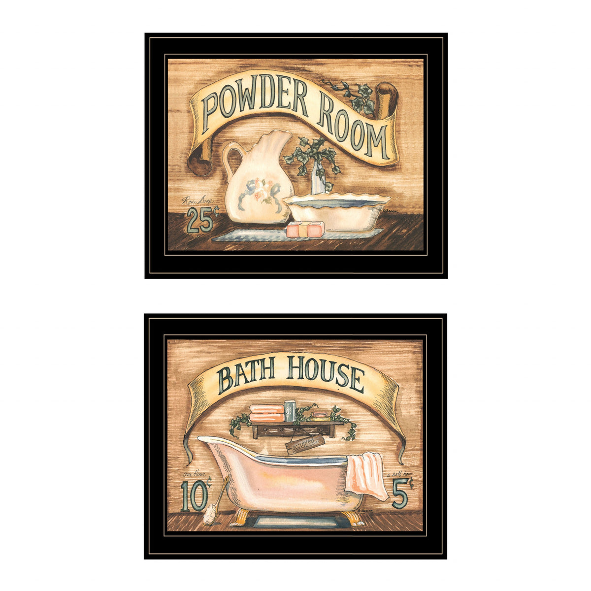 The set of two bath & powder room 2-piece vignette 2 black framed print wall art is the perfect decorative accessory for your home. This print is a visual artistic expression that allows you to decorate your space in restyle. This hanging accent will be a trendy and fashionable way to dress your walls. Adding this hanging wall art to your space to make your room feel more attractive. al point in the room with this fabulous wall decor option. 11' H x 13' W x 1' D