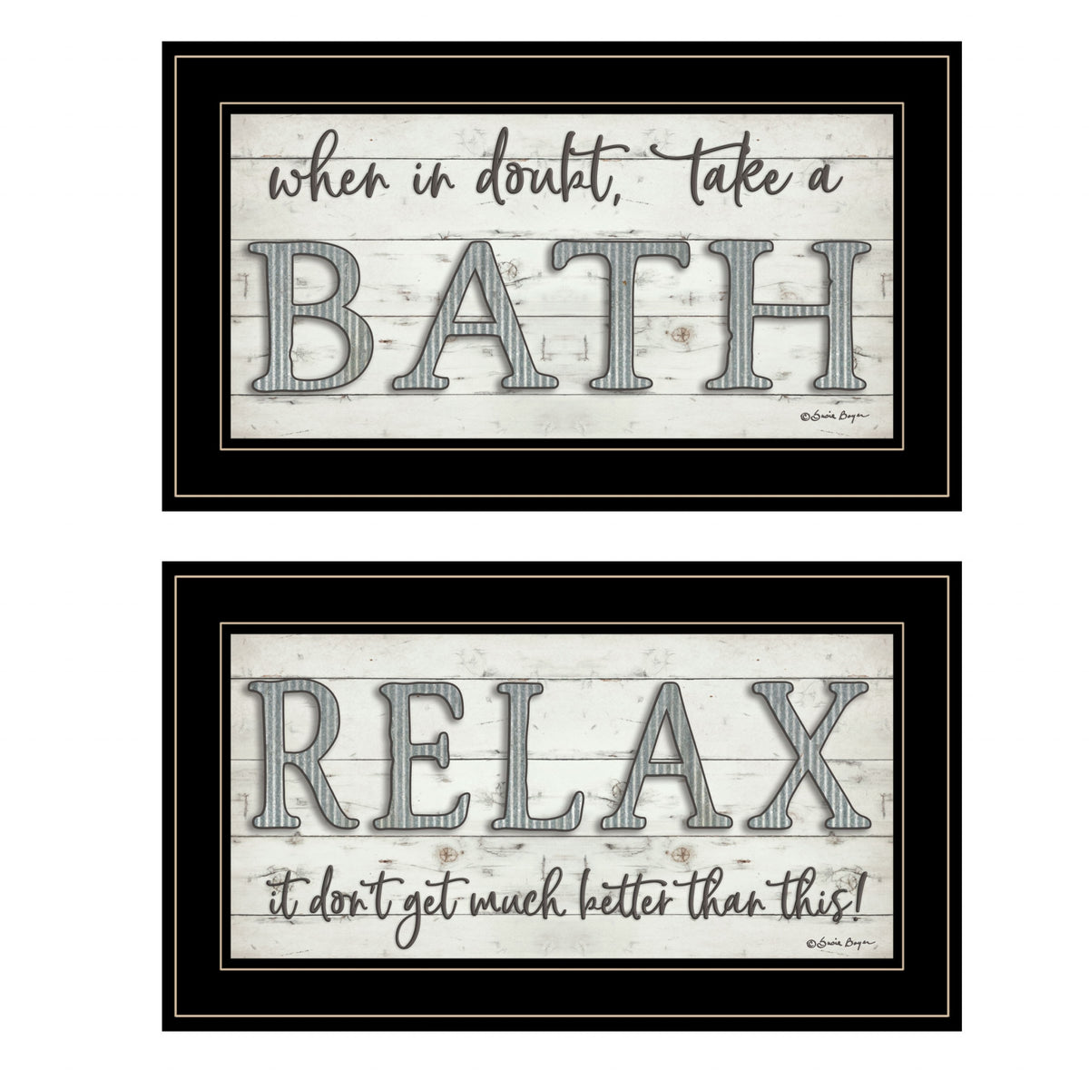 Unique and decorative, this set of two bath relax vignette 2 black framed print bathroom wall art will leave a lasting impression. This print is a visual artistic expression that allows you to decorate your space in style. Reproduced for you on paper, this hanging decorative accent will be a trendy and fashionable way to dress your walls. Hang on your wall to add some up to date fashion and decoration. Instliven up your space with this art that brings color and your dimension to your size. 12' H x 21' W x 1' D