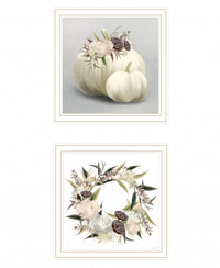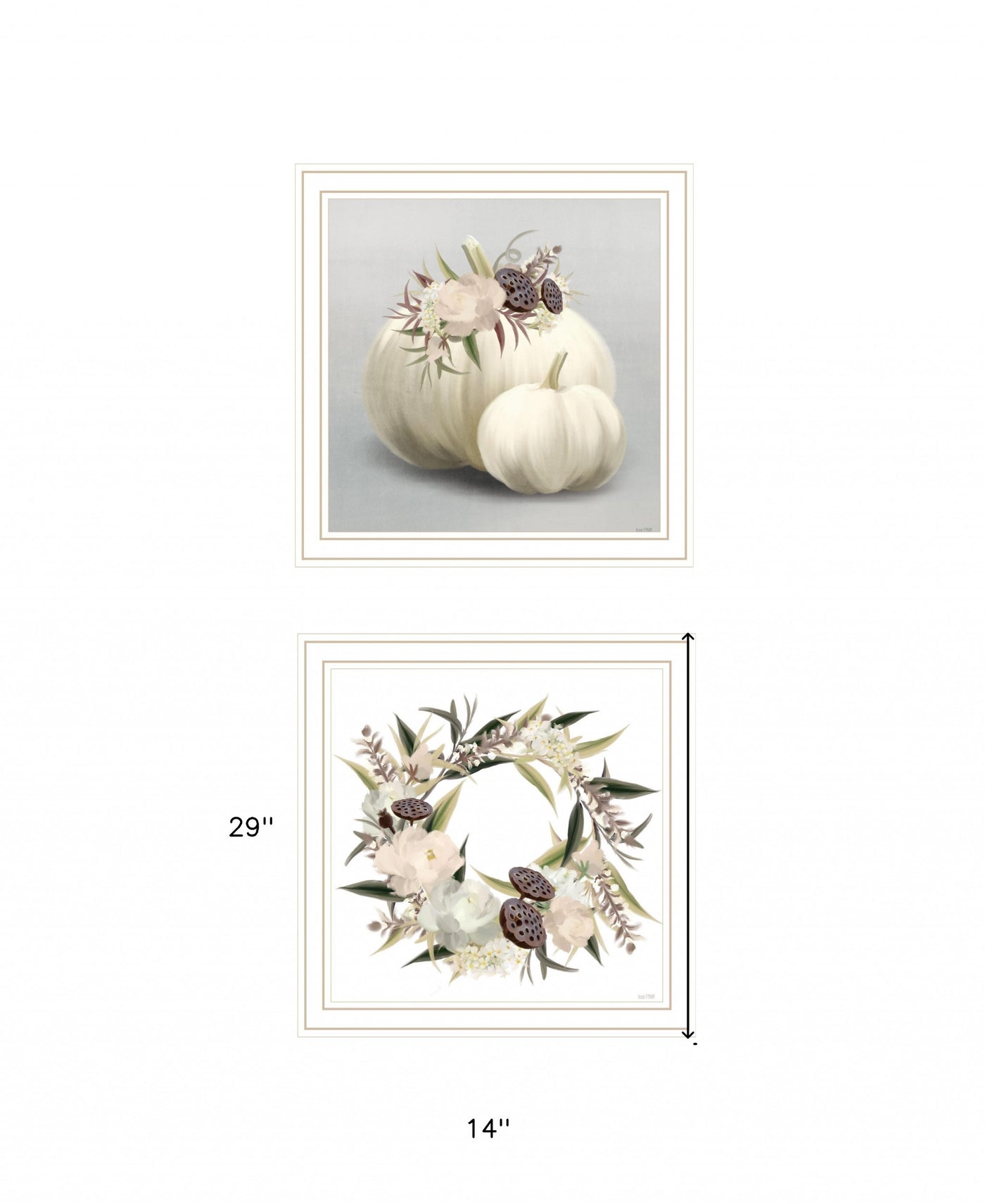 Unique and decorative, this set of two boho pumpkins and flowers 2-piece vignette 2 white framed print wall art will leave a lasting impression. This print is a visual artistic expression that allows you to decorate your space in style. Reproduced for you on wood, this hanging accent will be a trendy and fashionable way to dress your walls in a rustic and modern farmhouse vibe. Adding this hanging wall art to your space feel more room Finished and attractive. ize this opportunity to create a focal point in the room with this wonderful wall decor option. 14' H x 29' W x 1' D