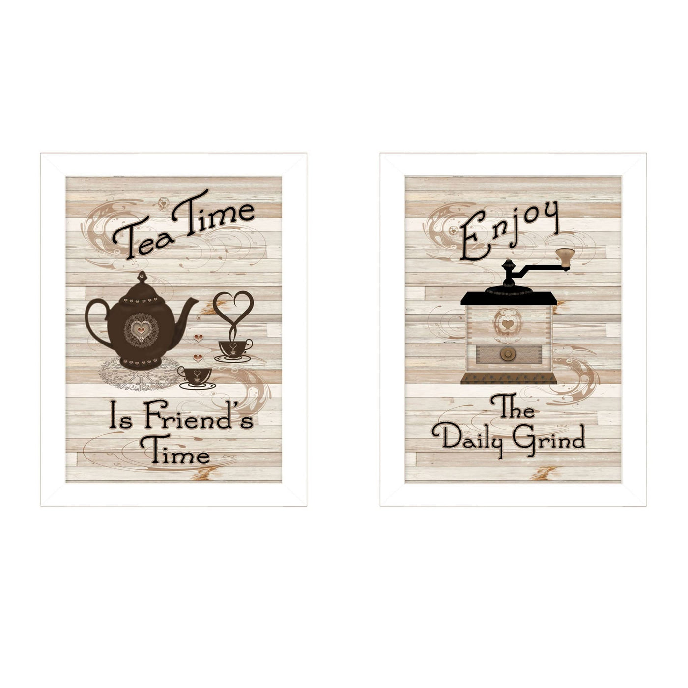 Add an air of fashion to your room and rejuvenate the space with this set of two enjoy tea time 2-piece vignette 3 white framed print wall art. This wall art features a favorite hot beverage. Set the scene and add some fun decoration to your space with this coffee print is a visual expression that allows you to decorate your space in style. Reproduced for you on paper, this hanging decorative will be a trendy and fashionable way. dress your walls. Hang on Your wall to add some up to date fashion and decoration. Utilize this opportunity to create a focal point in the room with this wonderful wall decor option. 10' H x 14' W x 1' D