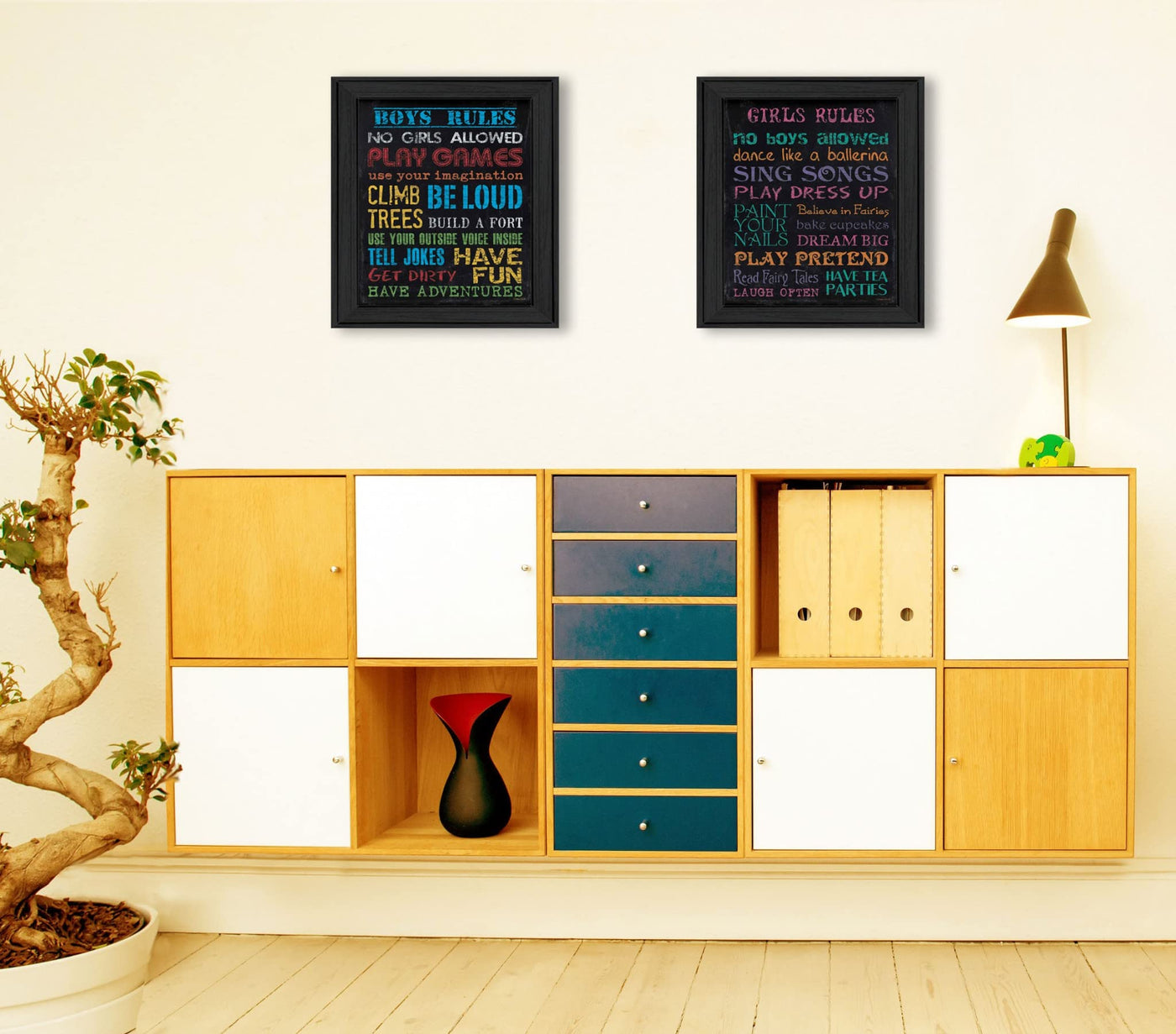 This set of two family kids rules collection 2-piece vignette black framed print wall art will add a beautiful decorative accent to your decor. This print is a visual artistic expression that allows you to decorate your space in style. Reproduced for you on paper, this hanging accent will be a trendy and fashionable way to dress your walls. Adding this hanging wall art to make your room feel more and attractive. point in the room with This fabulous wall decor option. 19' H x 30' W x 1.5' D