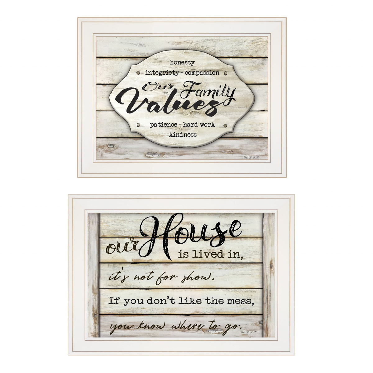 Add an air of fashion to your room and rejuvenate the space with this set of two family values 2-piece vignette 1 white framed print wall art. This print is a visual artistic expression that allows you to decorate your space in style. Reproduced for you on paper, this hanging decorative accent will be a trendy and fashionable way to dress your walls. Hang on your wall to add some up to date fashion and decoration. Utilize this opportunity to create a focal point in the room with This fabulous wall decor option. 15' H x 21' W x 1' D