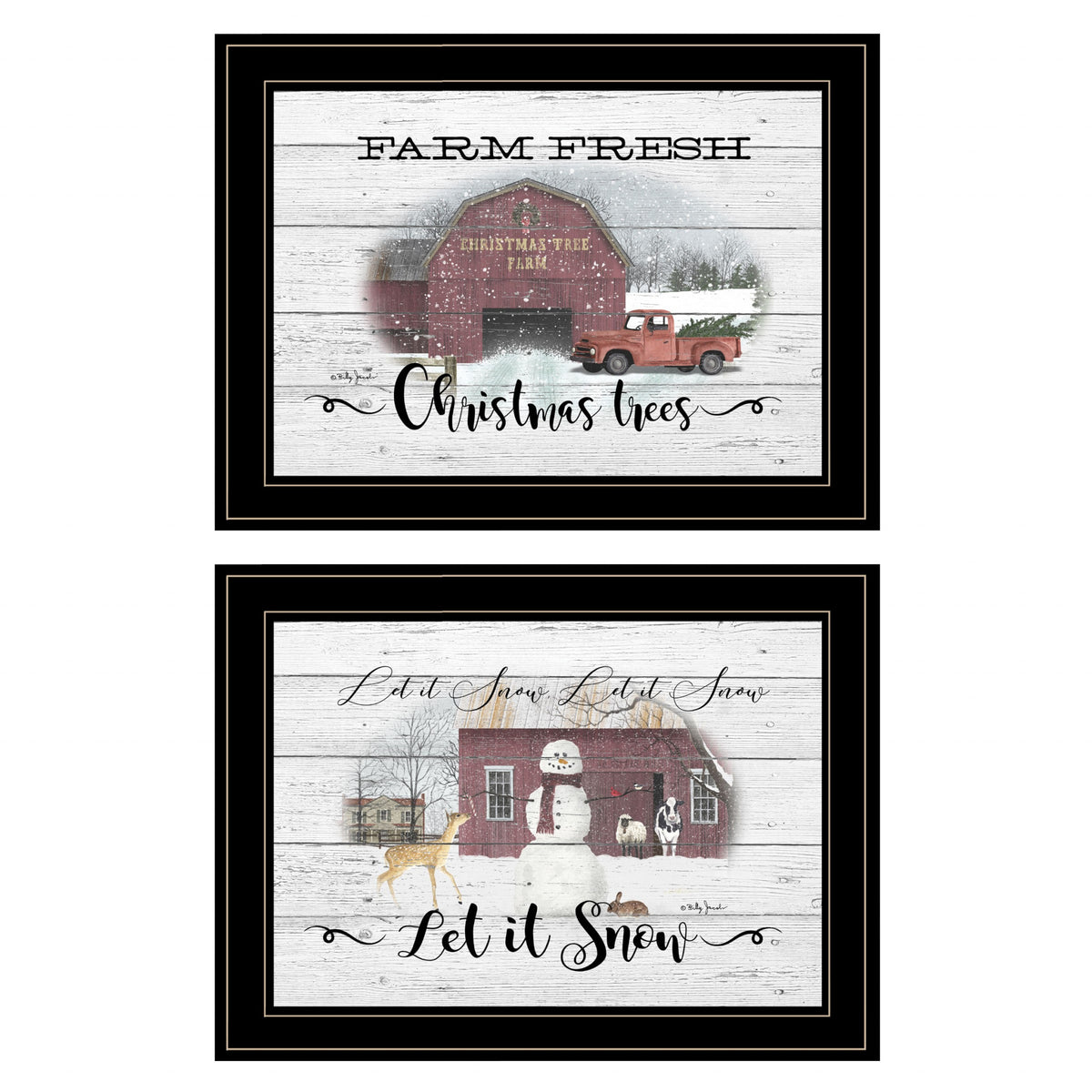 Set a festive Christmas mood with this set of two farm Christmas trees and snow black framed print wall art. This print is a visual artistic expression that allows you to decorate your space in restyle. Made for you on paper, this hanging accent will be a trendy and fashionable way to dress your walls. Adding this hanging wall art to make your room feel more finished and attractive. Instantly liven up your space with this art that brings color to your space. Walls: 15' H x 19' W x 1' D