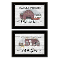 Set Of Two Farm Christmas Trees and Snow Black Framed Print Wall Art