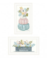 This set of two floral pumpkins 1 2-piece vignette white framed print wall art will add a beautiful decorative accent to your decor. This print is a visual artistic expression that allows you to decorate your space in style. Reproduced for you on wood, this hanging decorative accent will be a trendy and fashionable way to dress your walls in a rustic and modern farmhouse vibe. Adding this hanging wall art to your space feel more attractive. Instantly liven up Your space with this art that brings color and dimension to your walls. 34' H x 21' W x 1' D