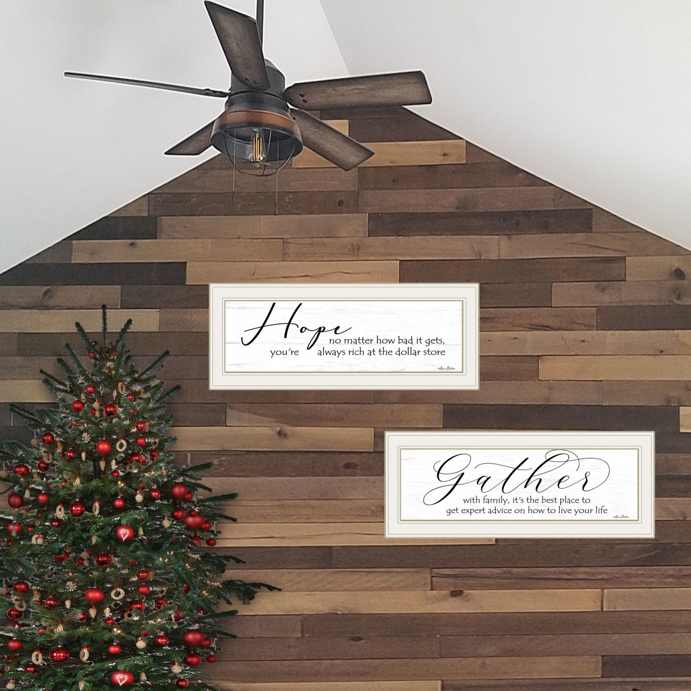 Bring some sizzle to your space with this eye-catching set of two gather together 2-piece vignette 1 white framed print wall art. This print is a visual artistic expression that allows you to decorate your space in restyle. This hanging accent will be a trendy and fashionable way to dress your walls. Adding this hanging wall art to your space to make your room feel more attractive. art that brings color and Dimensions to your walls. 1' H x 23' W x 1' D
