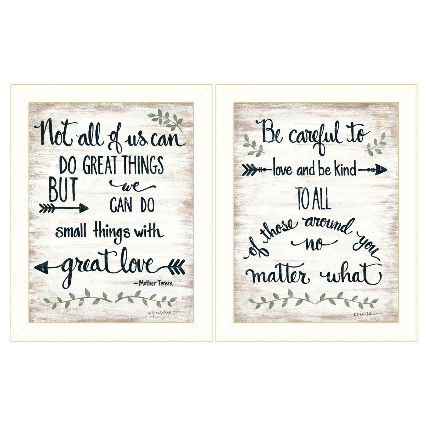 Bring some sizzle to your space with this eye-catching set of two great love 2-piece vignette 2 white framed print wall art. This print is a visual artistic expression that allows you to decorate your space in style. Reproduced for you on paper, this hanging accent will be a trendy and fashionable way to dress your walls. Hang on your wall to add some up to date fashion and decoration. Instantly liven up your space with this art that brings color and feel. Your walls. 18' H x 14' W x 1' D