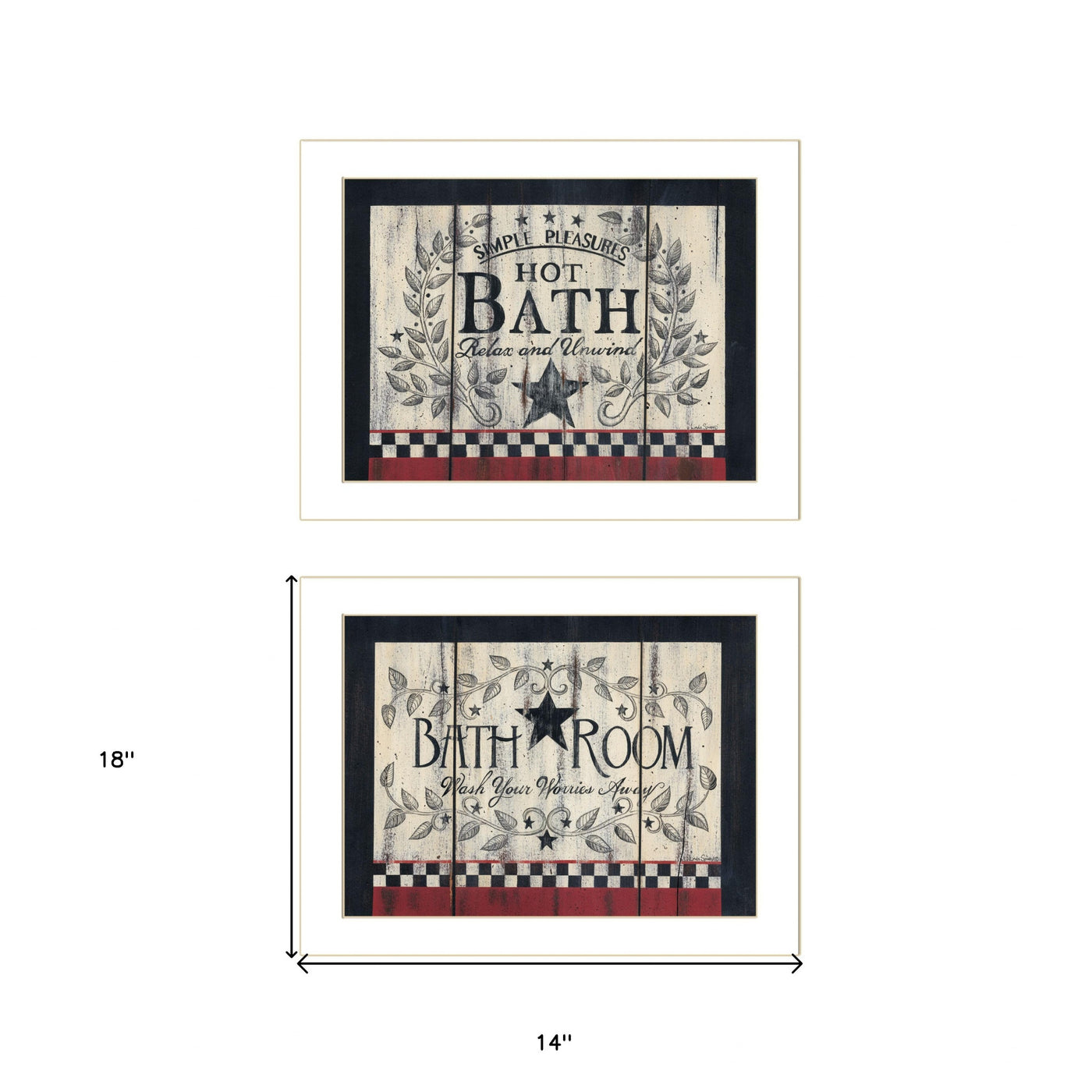 This set of two hot bath 2-piece vignette 10 white framed print wall art will add a beautiful decorative accent to your decor. This print is a visual artistic expression that allows you to decorate your space in style. Reproduced for you on paper, this hanging decorative accent will be a trendy and fashionable way to dress your walls. Adding this hanging wall art to make your room feel more and attractive. point in the room with This fabulous wall decor option. 14' H x 18' W x 1' D
