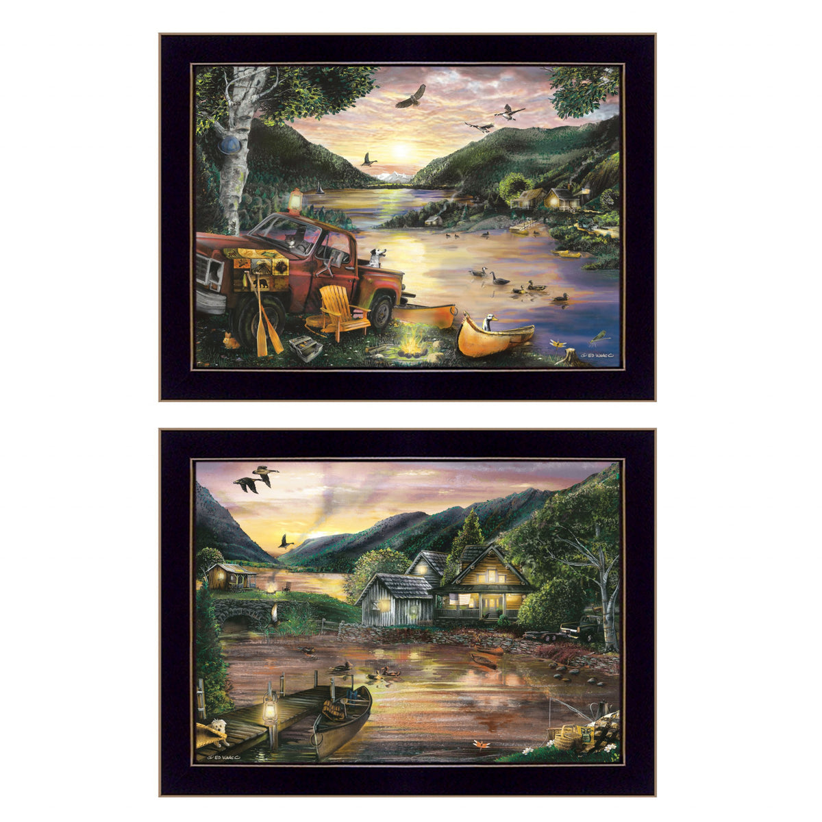 Bring some sizzle to your space with this eye-catching set of two lakefront camping 2-piece vignette 3 black framed print wall art. This print is a visual artistic expression that allows you to decorate your space in style. Reproduced for you on paper, this hanging accent will be a trendy and fashionable way to dress your walls. Hang on your wall to add up to some fashion and decoration. Utilize this opportunity to create a focal point in the room with this fabulous wall decor option. 14' H x 18' W x 1' D