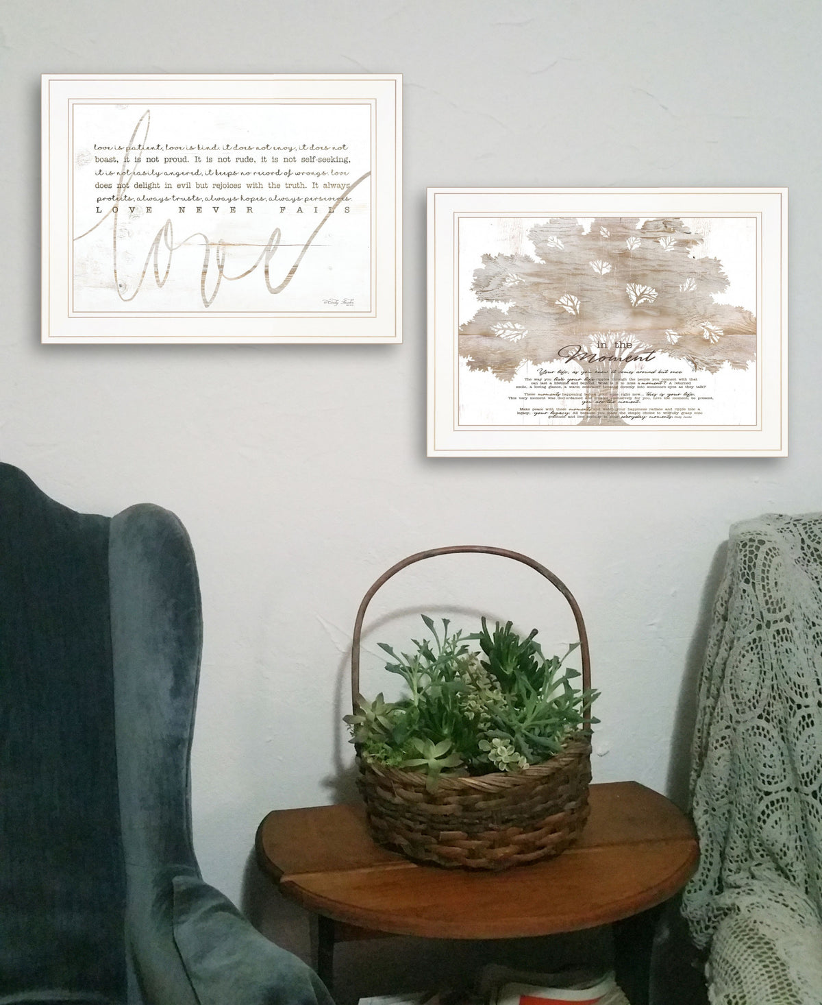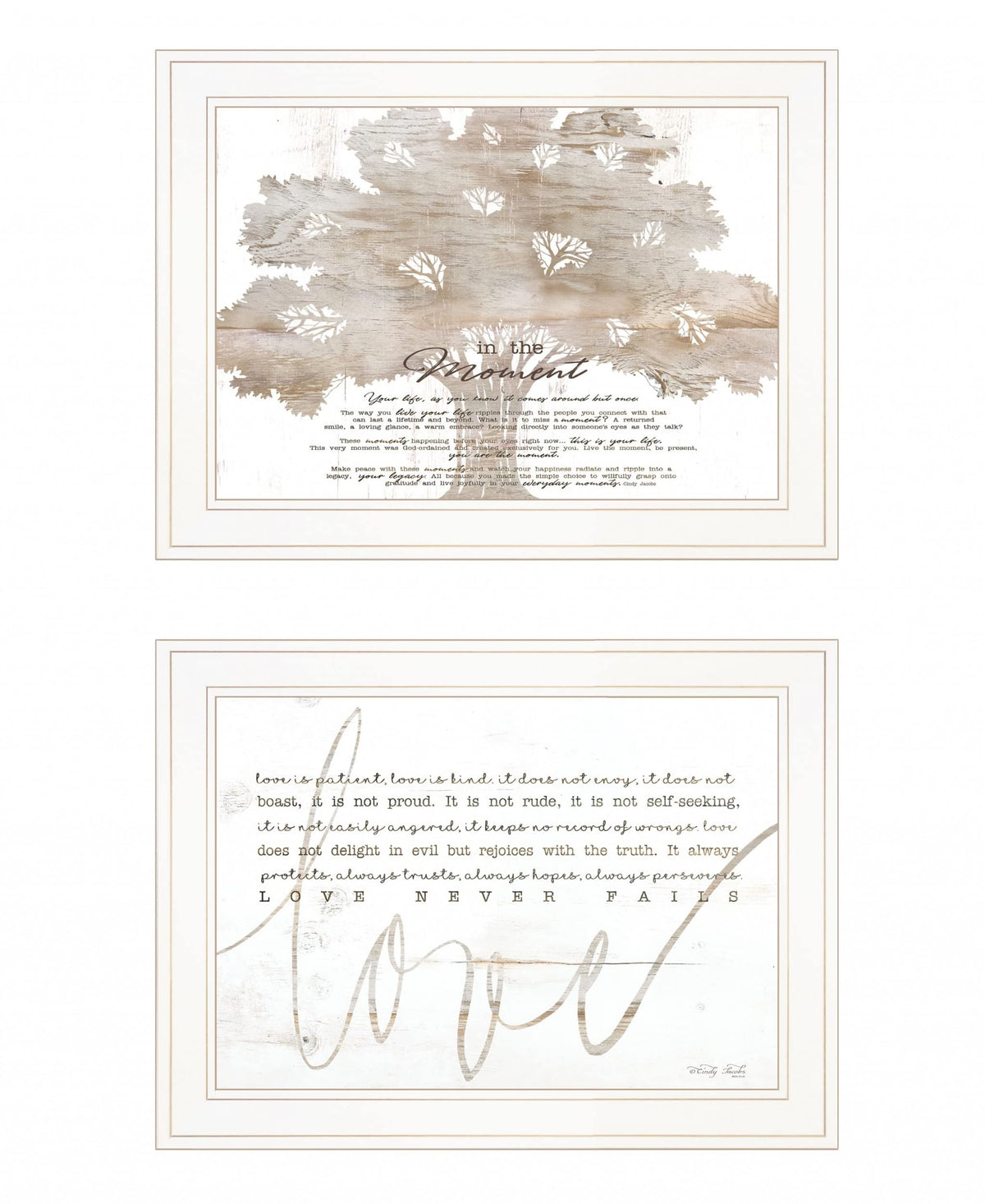 Add an air of fashion to your room and rejuvenate the space with this set of two love / in the moment white framed print wall art. This print is a visual artistic expression that allows you to decorate your space in restyle. Reproduced for you on wood, this hanging accent will be a trendy and fashionable way to dress your walls in a rustic and modern farmhouse vibe. Hang on your wall to add some up fashion and Instliven decoration. your space with this art that brings color and dimension to your walls. 31' H x 19' W x 1' D