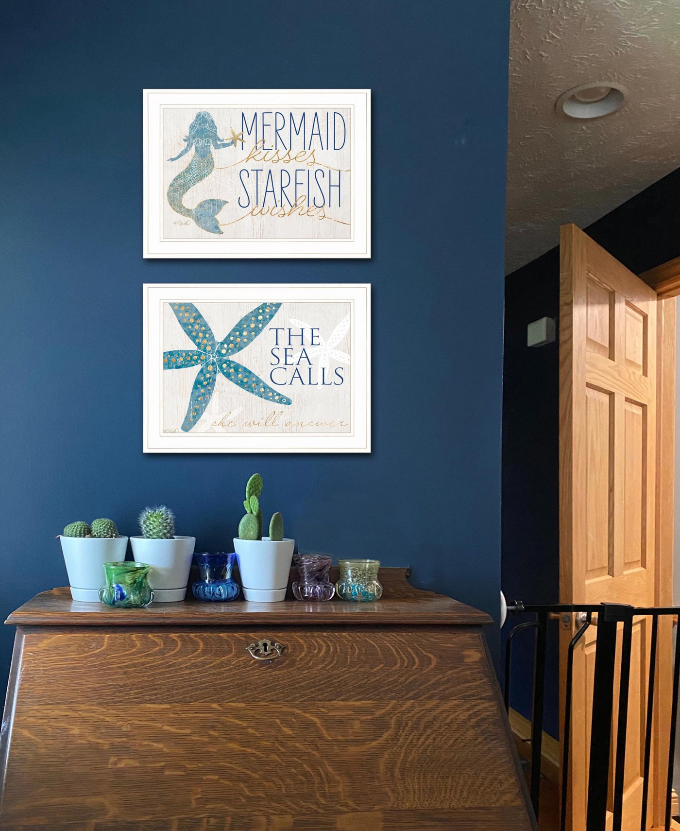 Unique and decorative, this set of two mermaid kisses starfish wishes 2-piece vignette 2 white framed print wall art will leave a lasting impression. This print is a visual artistic expression that allows you to decorate your space in style. Reproduced for you on wood, this hanging accent will be a trendy and fashionable way to dress your walls in a rustic and modern farmhouse vibe. Adding this hanging wall art to your space to make your room. Feel more finished and attractive. e. Instantly liven up your space with this art that brings color and dimension to your walls. 31' H x 19' W x 1' D