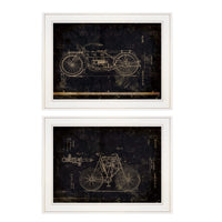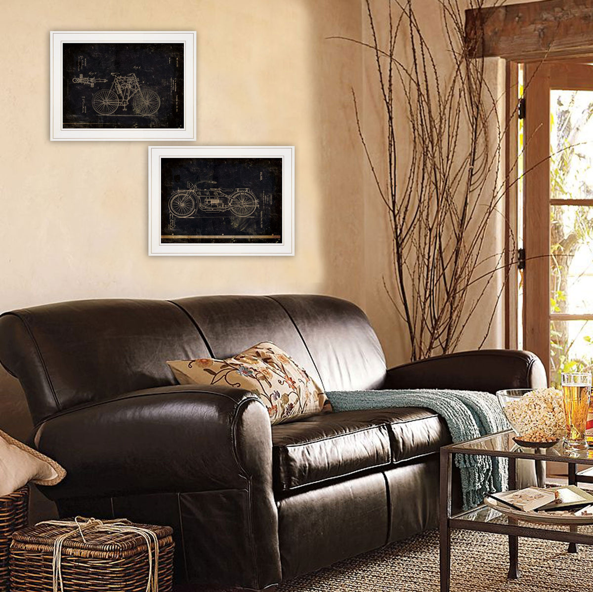 Add an air of fashion to your room and rejuvenate the space with this set of two motor bike patent i & ii 2-piece vignette 1 white framed print wall art. This transportation inspired wall features a bike icon and will bring a refreshing look and perspective to your walls. This print is a visual expression that allows you to decorate your space in style. Reproduced for you on paper, this hanging decorative accent will be a trendy and way to dress your walls. Hang on your wall to add some up to date fashion and decoration. Utilize this opportunity to create a focal point in the room with this wonderful wall decor option. 19' H x 15' W x 1' D