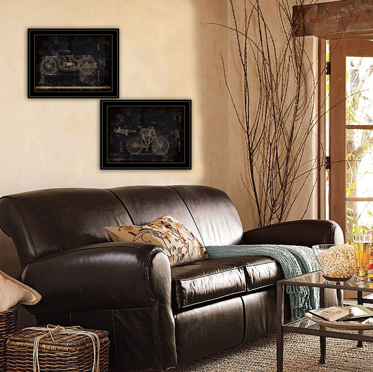 This set of two motor bike patent i & ii 2-piece vignette 2 black framed print wall art will add a beautiful decorative accent to your decor. This transportation inspired wall art features a bike icon and will bring a refreshing look and perspective to your walls. This print is a visual expression that allows you to decorate your space in Reproduced for you on paper, this hanging accent will be a trendy and fashionable way to dress your Hang on your wall. wall to add some up To date fashion and decoration. Instantly liven up your space with this art that brings color and dimension to your wall. 19' H x 15' W x 1' D