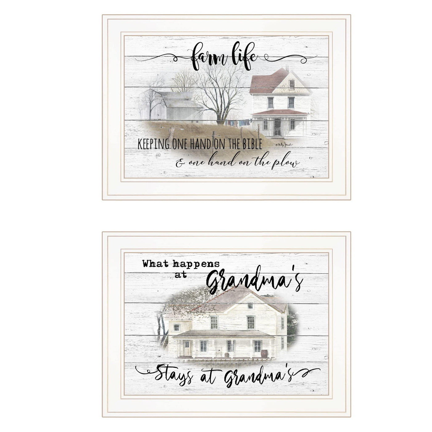 Bring some sizzle to your space with this eye-catching set of two stays at grandmas and bible farmhouse white framed print wall art. This print is a visual artistic expression that allows you to decorate your space in style. Reproduced for you on paper, this hanging accent will be a trendy and fashionable way to dress your walls. Hang on your wall to add some up to date fashion and decoration. Instantly liven up your space with this art that brings color and feel. Your walls. 15' H x 19' W x 1' D