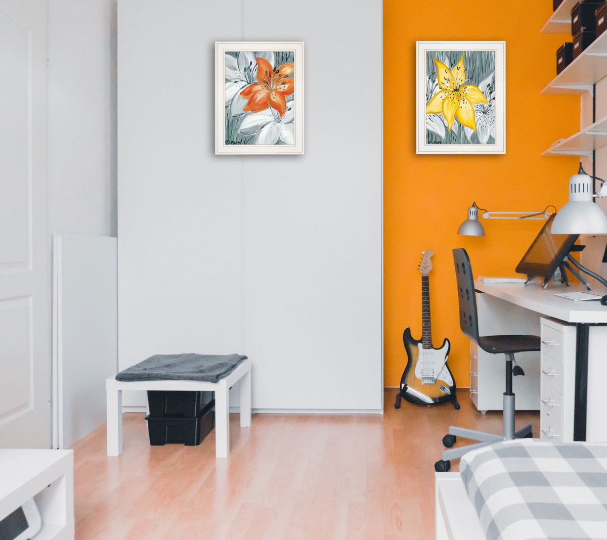 The set of two tiger lilies 2-piece vignette 1 white framed print wall art is the perfect decorative accessory for your home. This print is a visual artistic expression that allows you to decorate your space in style. Reproduced for you on paper, this hanging accent will be a trendy and fashionable way to dress your walls. Hang on your wall to add up to some fashion and decoration. Utilize this opportunity to create a focal point in the room with this fabulous wall decor option. 19' H x 15' W x 1' D