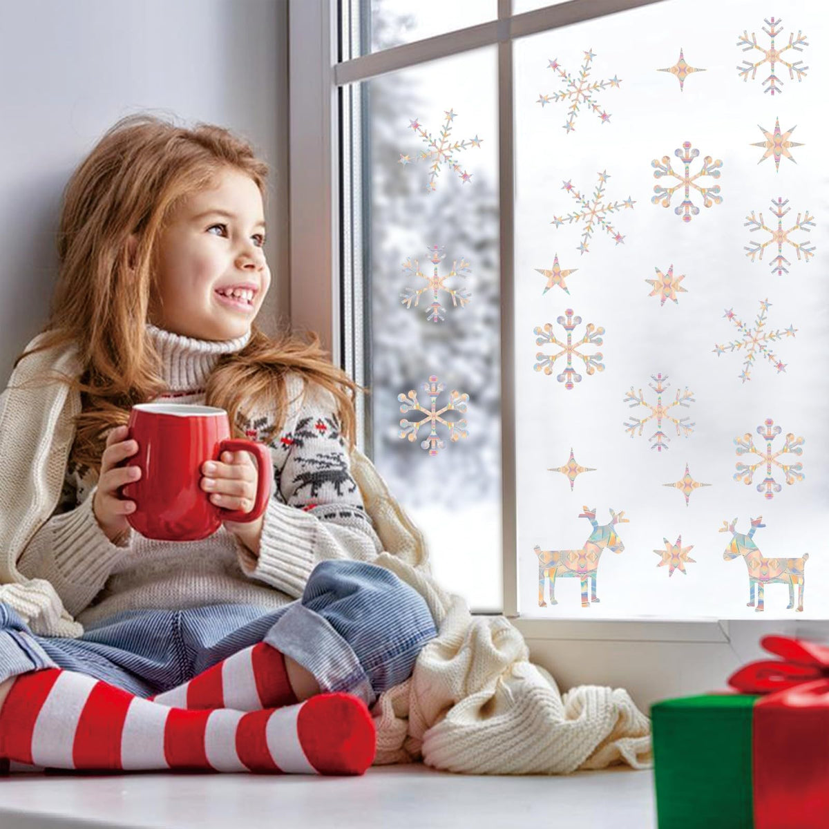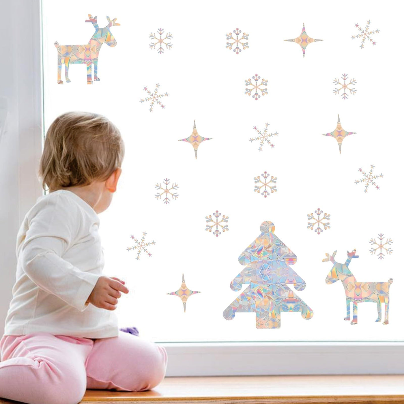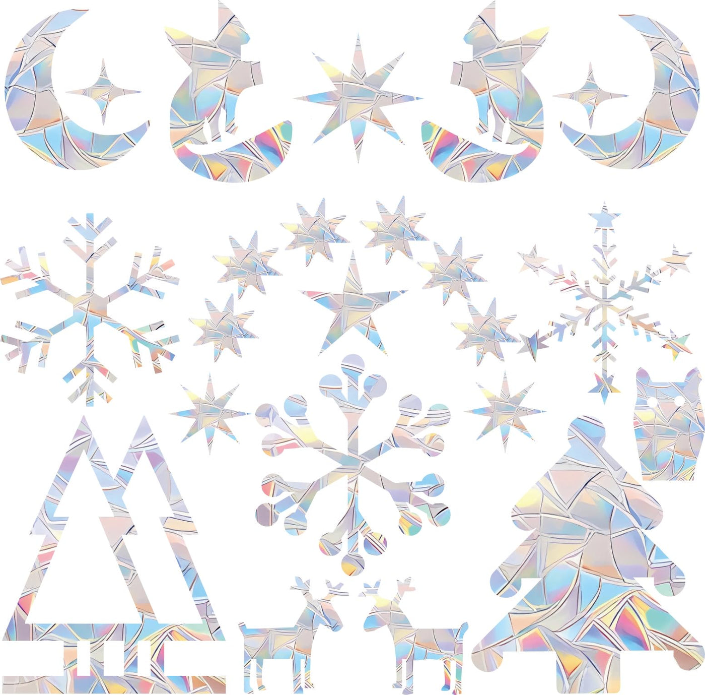 Q: How do the Christmas Snowflake Window Clings help prevent bird strikes?A: The Christmas Snowflake Window Clings are designed to alert birds to the presence of glass surfaces, thereby reducing the risk of collisions. Their reflective properties help birds recognize windows and glass doors as obstacles, promoting safe navigation around your home or office.