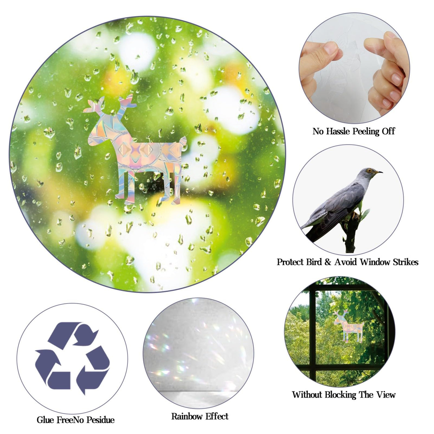 1. Safeguarding Birds And Delighting Your Senses: Experience The Enchantment Of Rainbows In Your Home While Protecting The Birds You Adore. Our Magical Prisms, When Applied To Sunlit Windows, Create Brilliant Rainbows That Extend Deep Into Your Living Space. On Darker Windows, They Transform Into Mesmerizing Orbs That Help Prevent Bird Collisions. 2. Seamless Integration And Captivating Designs: Our Prisms Seamlessly Blend With Your Picture Windows, Ensuring They Don'T Detract From Their Intended Purpose. Applying Them Is A Breeze, And They Cast A Breathtaking Rainbow Across Your Living Area. Your Furry Friends Will Be Overjoyed As They Play Amidst The Vibrant Colors. 3. Versatile Window Cling Sets: Our Window Cling Sets Are Available In A Variety Of Shapes And Sizes, Ensuring Your Windows Look Decorated Rather Than Cluttered With Identical Stickers. What'S More, These Clings Can Be Effortlessly Removed And Repositioned, Allowing You To Arrange Them According To Your Preferences. 4. Bringing Rainbows And Beauty Into Your Life: Our Unique Prism Designs, Featuring Different Shapes And Patterns, Infuse Your Life With The Beauty Of Rainbows. Not Only Do They Catch The Eye And Warn Birds, But They Also Add A Decorative Touch To Your Home. Saving Birds And Adorning Your House Has Never Been More Convenient. 5. Easy Application And Reusability: Our Clings Require No Adhesive, Making Installation And Removal A Breeze. Simply Peel Them Off, Apply Where Desired, And Remove With Ease. They Are Also Eco-Friendly And Reusable, Making Them A Practical Choice.