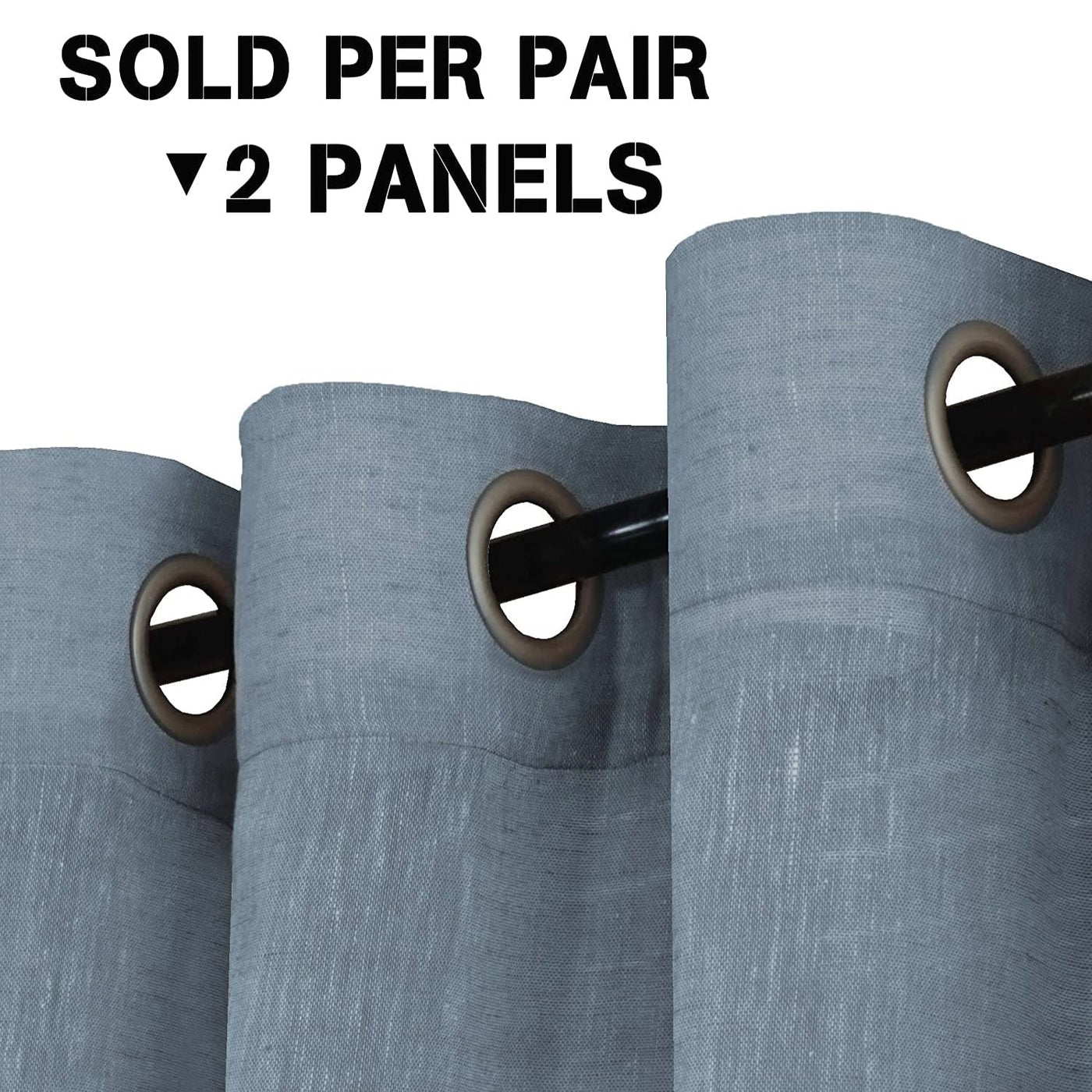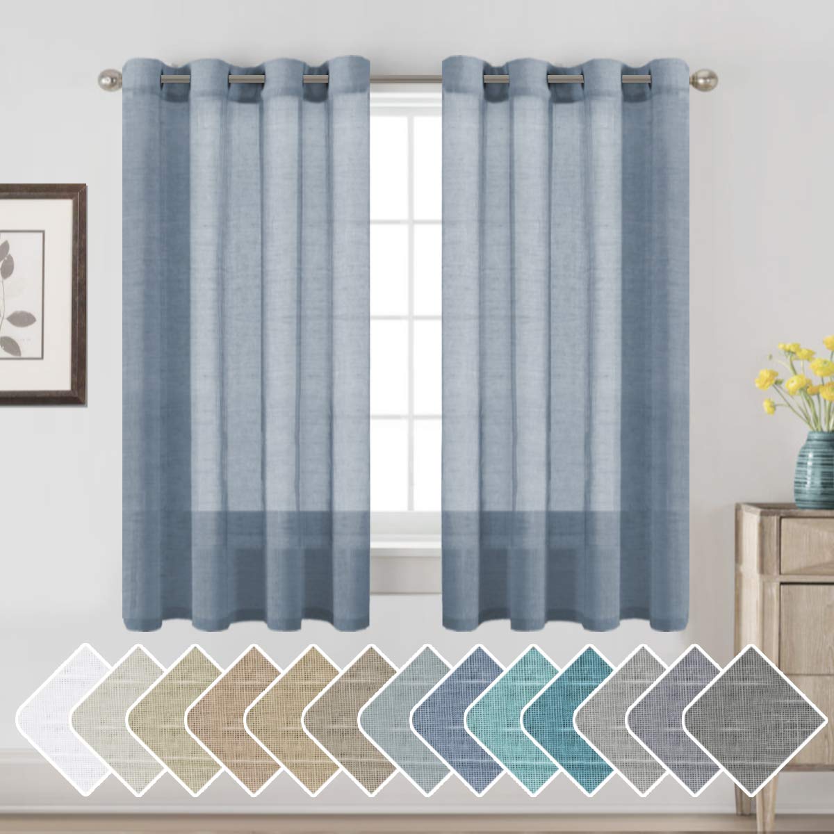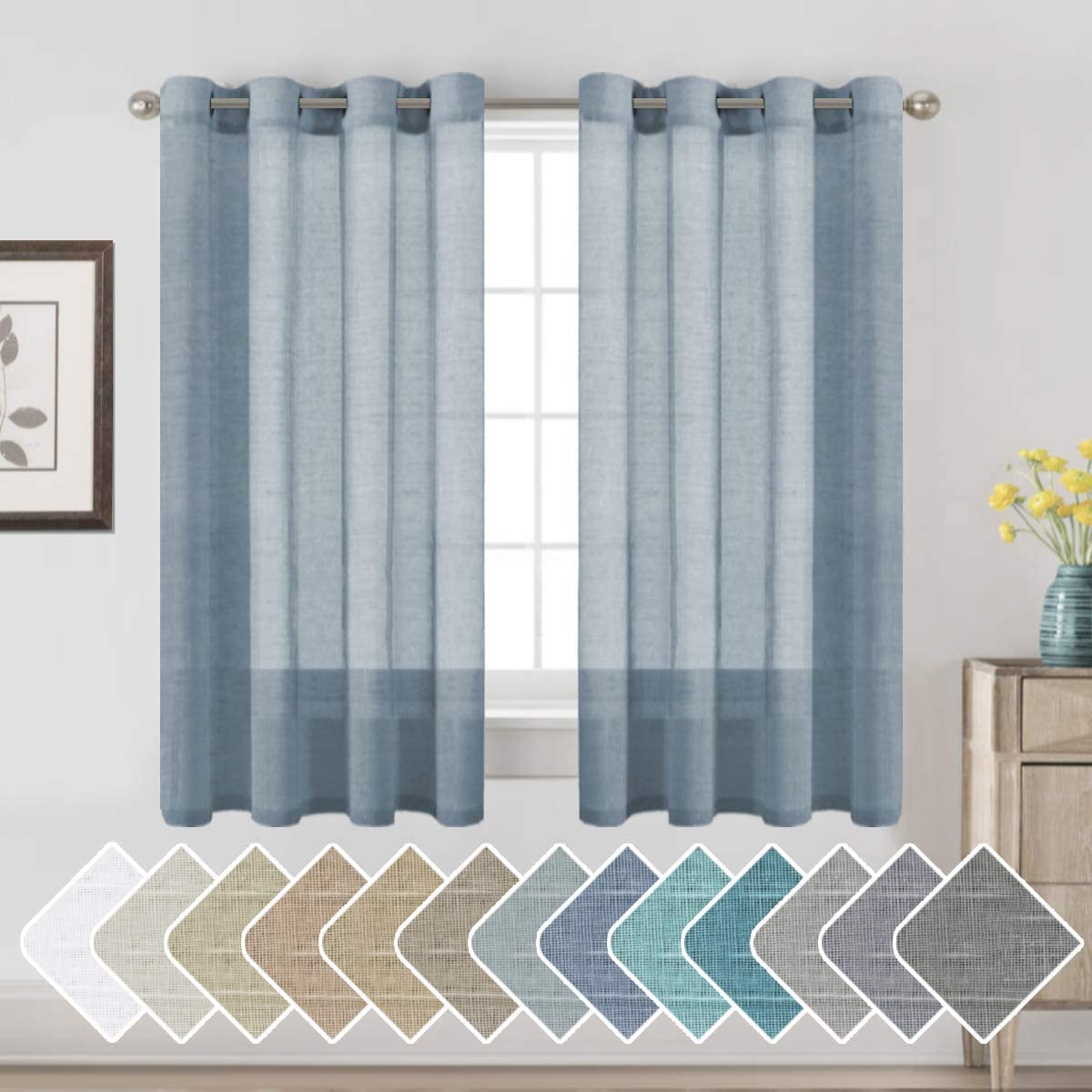 Sheer Linen Kitchen Curtains - 63 Inches Long Bedroom Window Treatments For Living Room / Rich Linen Curtain Panels And Drapes, Classic Nickel Grommet Curtains, Denim, 52 By 63 Inch, 2 Panels