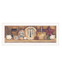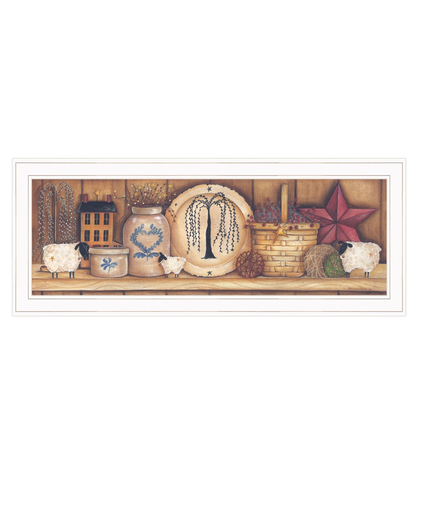 Unique and decorative, this shelf gathering 1 white framed print wall art will leave a lasting impression. This print is a visual artistic expression that allows you to decorate your space in reproduced for you on wood, this hanging decorative accent will be a trendy and fashionable way to dress your walls in a rustic and modern farmhouse vibe. Adding this hanging wall art to your space to make your room feel more attractive. this art that brings color and dimension to your walls. 12' H x 32' W x 1' D.