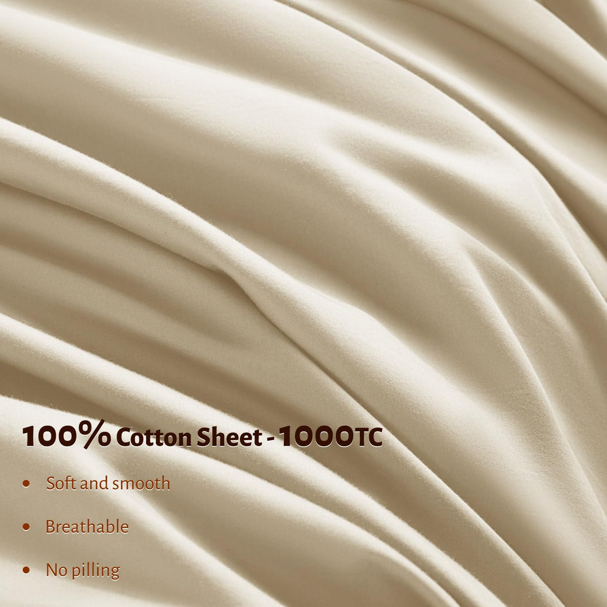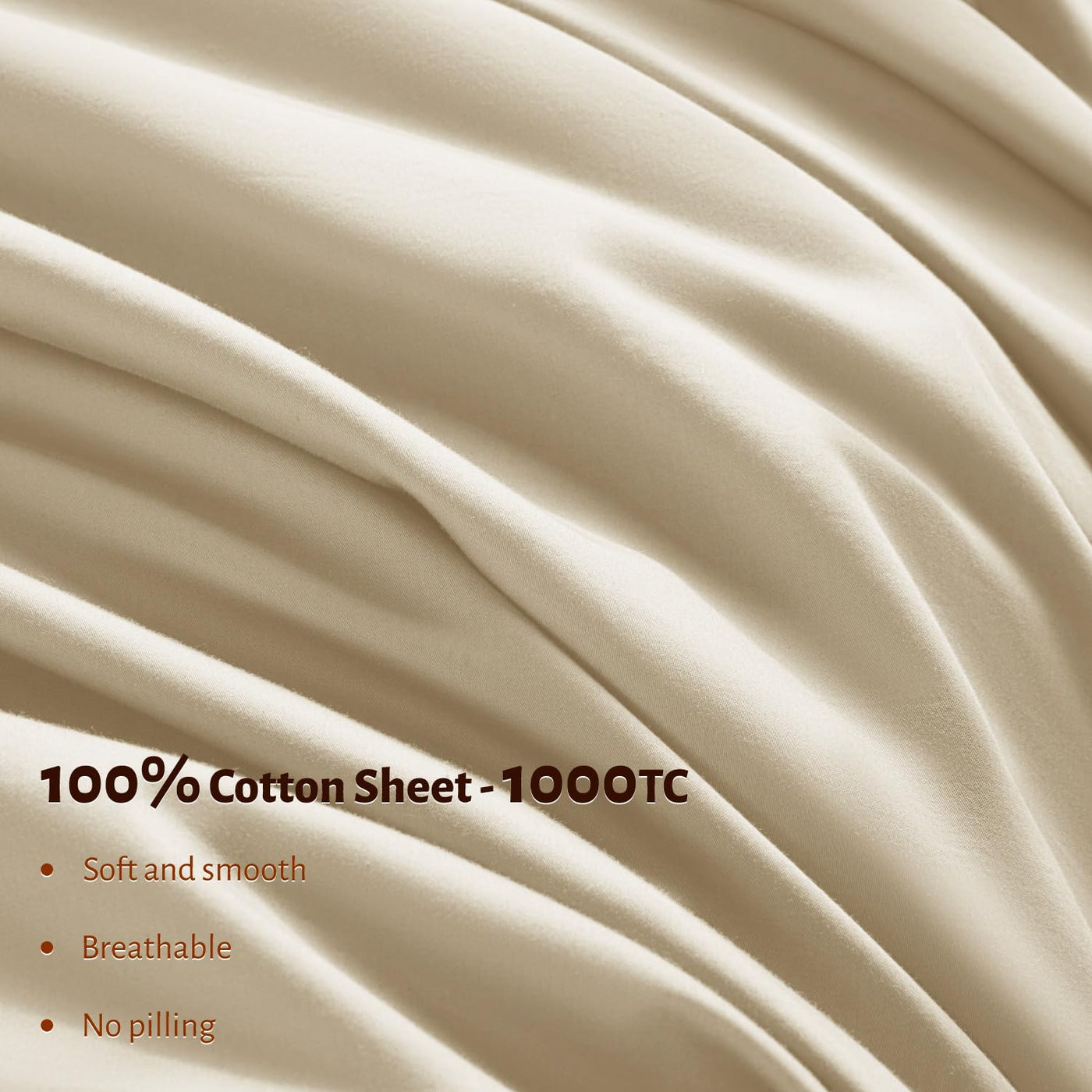 Shilucheng 100% Egyptian Cotton Queen Size Sheets Set - 1000 Thread Count,Luxury Cotton Bed Sheets,Breathable & Cooling Bedding And Pillow Cases, 16 Inch Deep Pocket - 4 Piece (Beige, Queen)