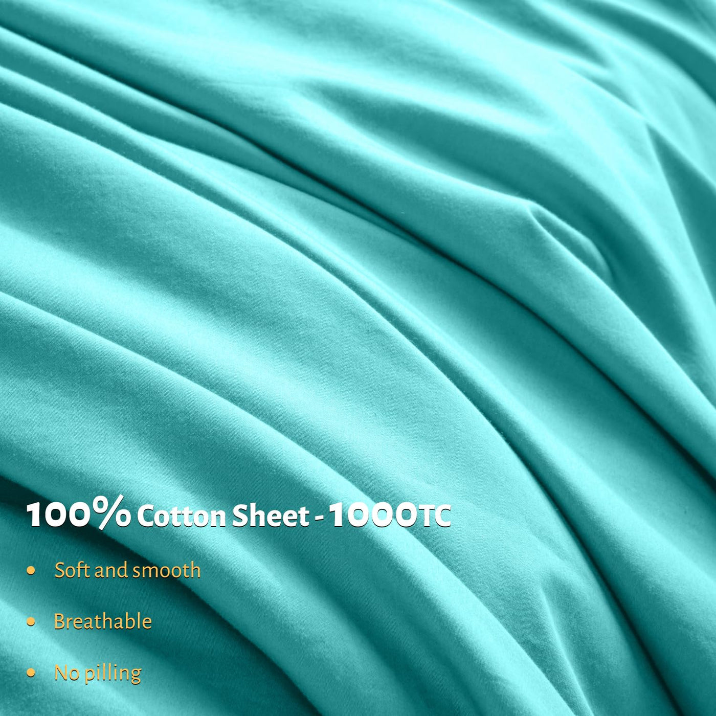 Shilucheng 100% Egyptian Cotton Queen Size Sheets Set - 1000 Thread Count,Luxury Cotton Bed Sheets,Breathable & Cooling Bedding And Pillow Cases, 16 Inch Deep Pocket - 4 Piece (Seafoam, Queen)