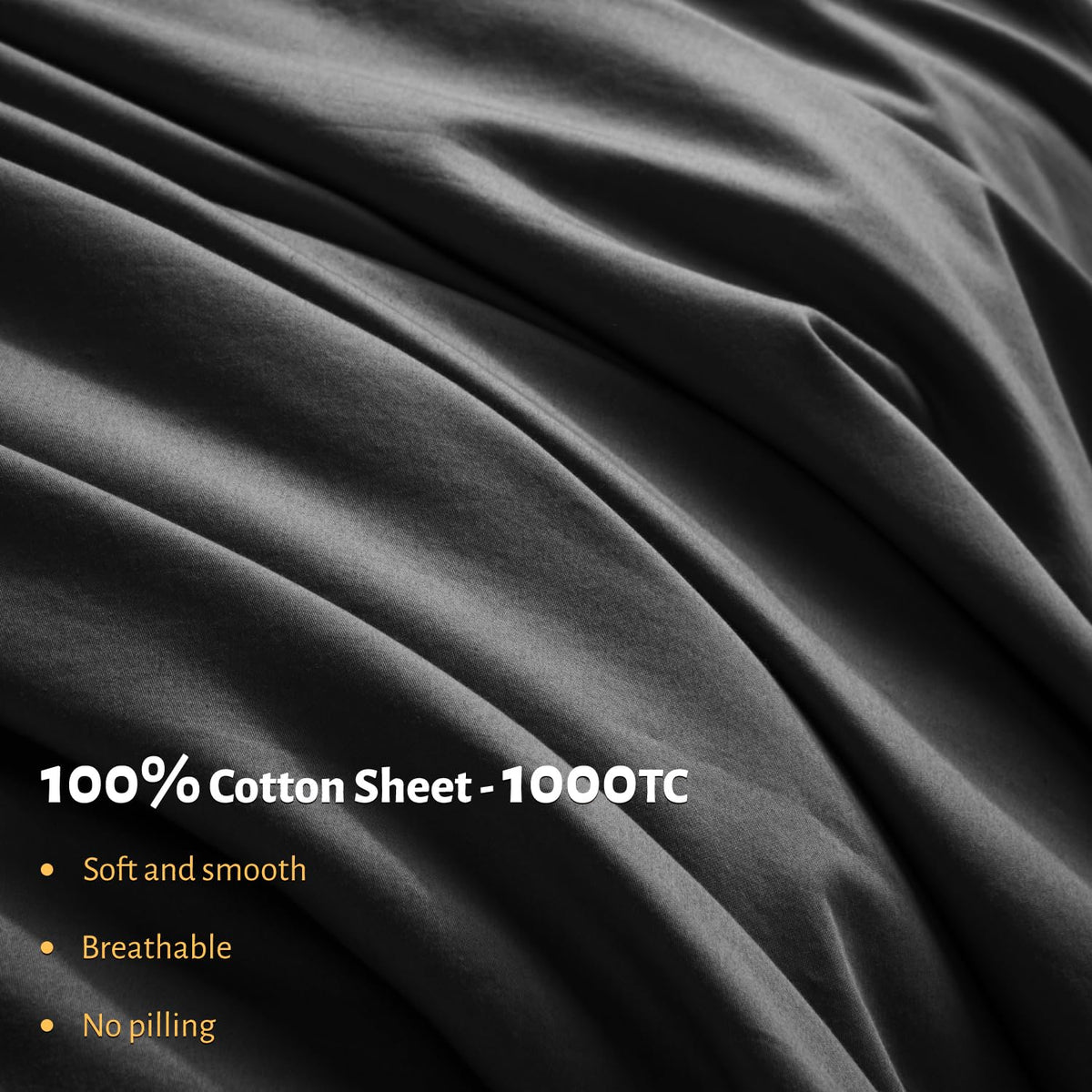Shilucheng 100% Egyptian Cotton Sheets Set - 1000 Thread Count,Luxury Cotton Bed Sheets,Breathable & Cooling Bedding And Pillow Cases, 16 Inch Deep Pocket - 4 Piece (Black, Full)