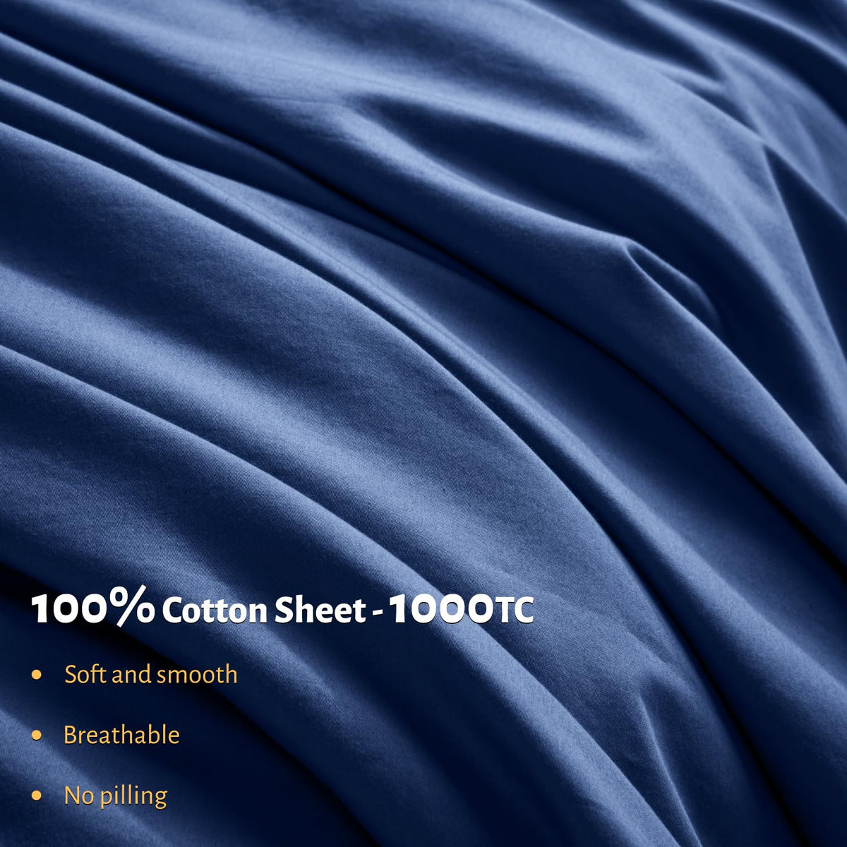 Shilucheng 100% Egyptian Cotton Sheets Set - 1000 Thread Count,Luxury Cotton Bed Sheets,Breathable & Cooling Bedding And Pillow Cases, 16 Inch Deep Pocket - 4 Piece (California King, Navy Blue)