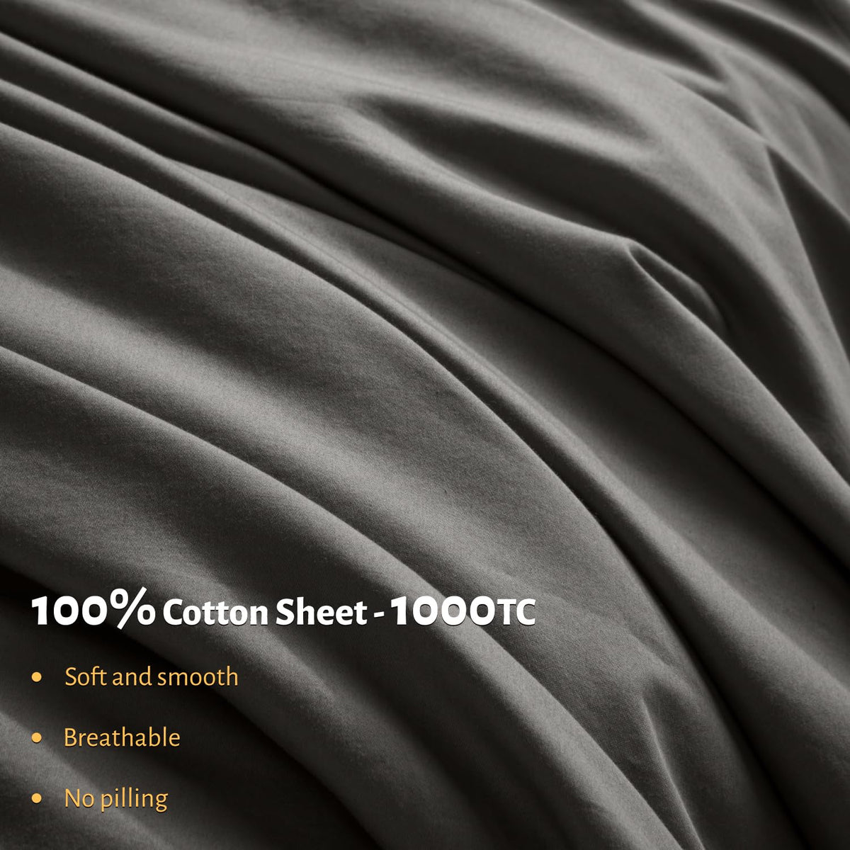 Shilucheng 100% Egyptian Cotton Sheets Set - 1000 Thread Count,Luxury Cotton Bed Sheets,Breathable & Cooling Bedding And Pillow Cases, 16 Inch Deep Pocket - 4 Piece (Dark Grey, Full)