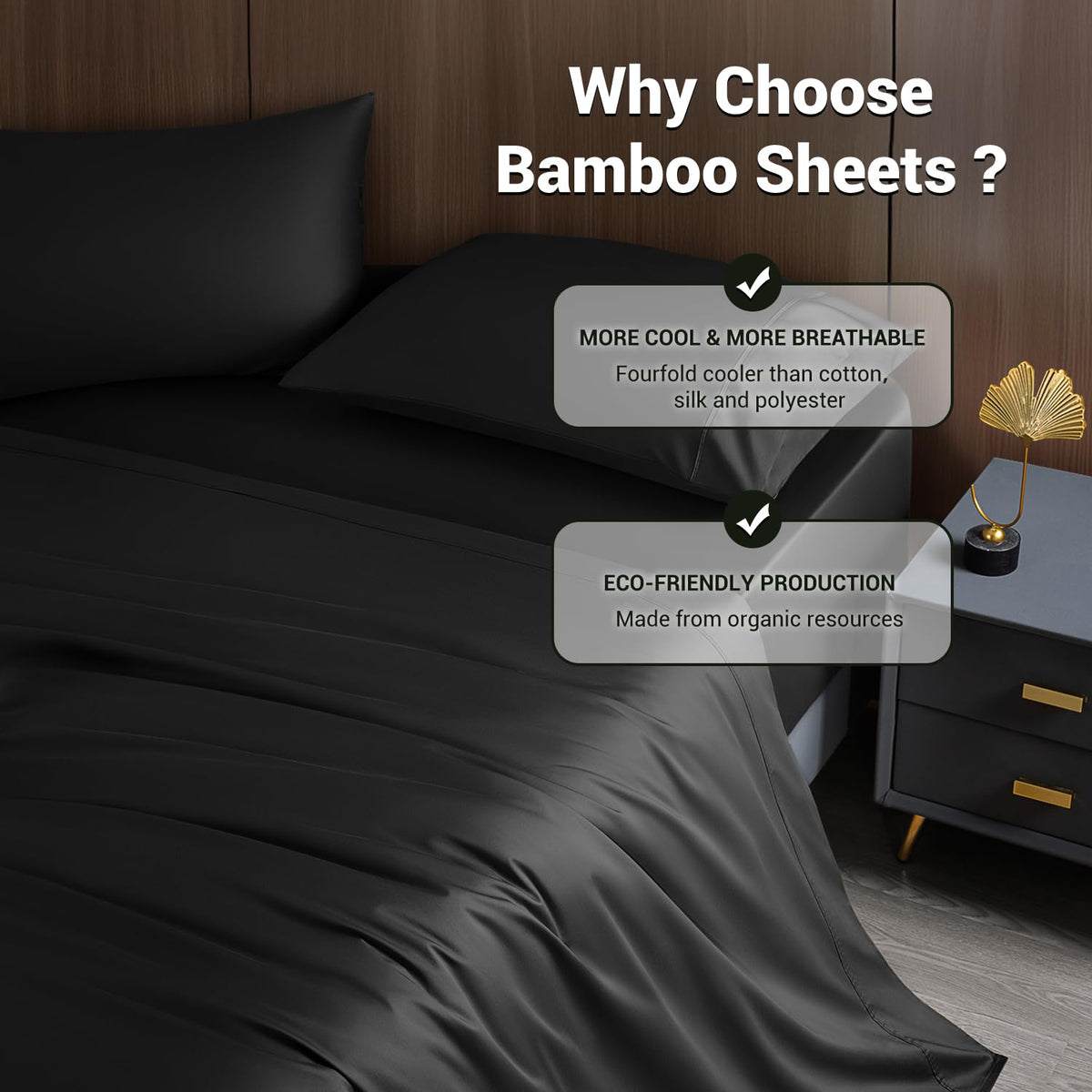 Shilucheng 4 Piece California King Sheet Sets, Cooling Sheets, Blend Rayon Derived From Bamboo, Deep Pocket Up To 16', Breathable & Soft Bed Sheets, Hotel Silky Bedding Set, Black
