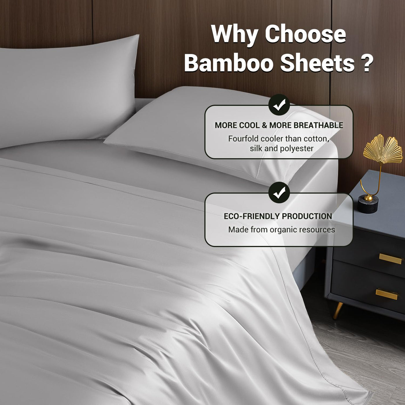 Shilucheng 4 Piece California King Sheet Sets, Cooling Sheets, Blend Rayon Derived From Bamboo, Deep Pocket Up To 16', Breathable & Soft Bed Sheets, Hotel Silky Bedding Set, Grey