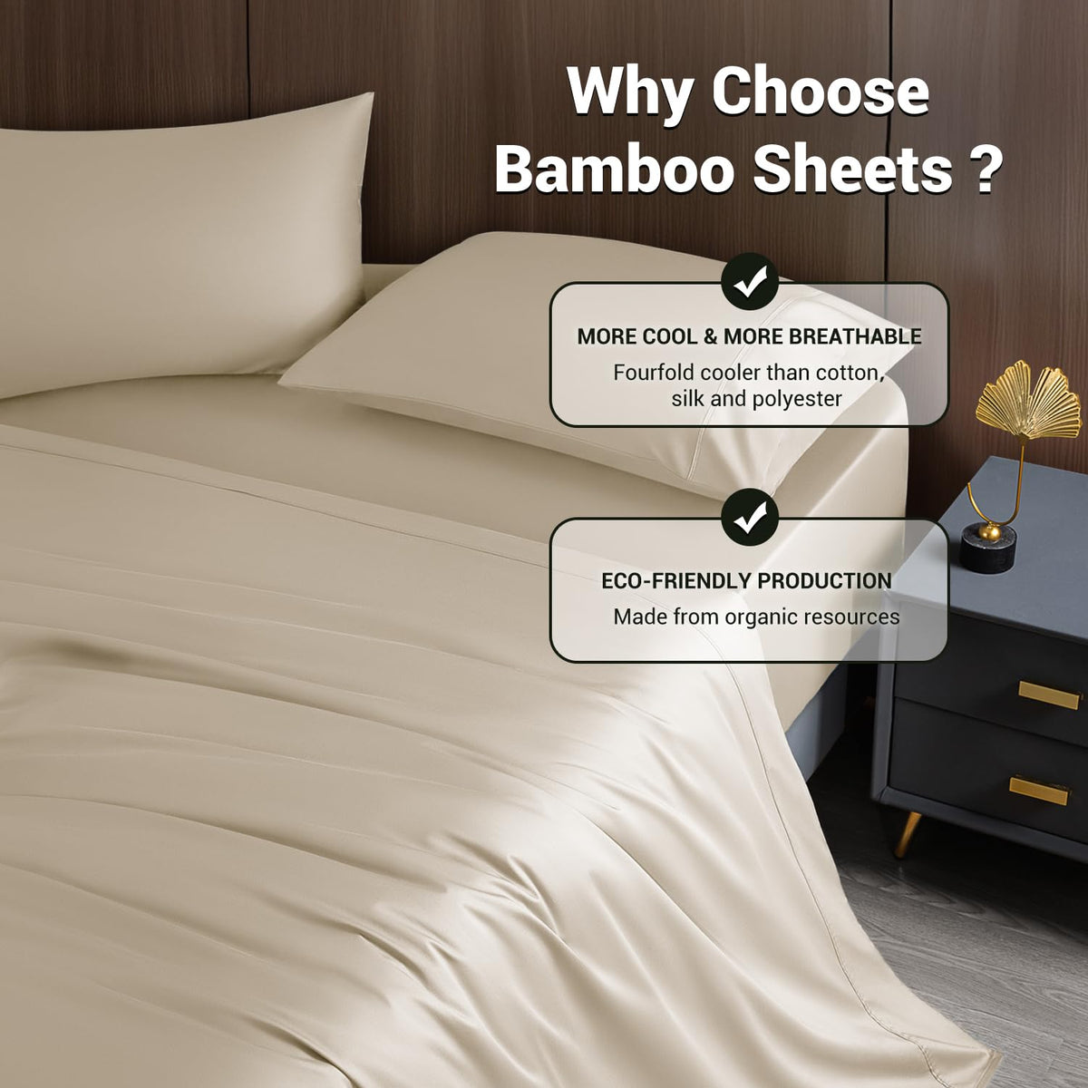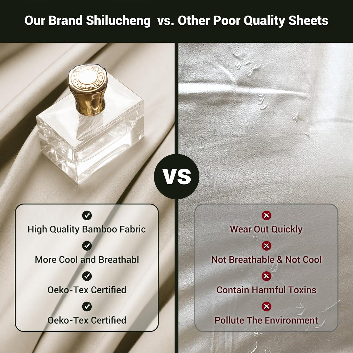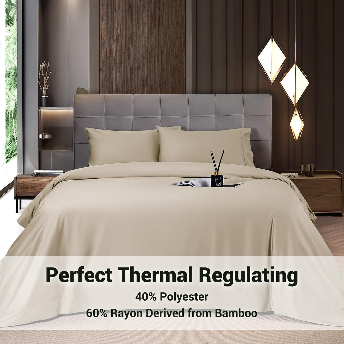 Shilucheng 4 Piece King Sheet Sets, Cooling Sheets, Blend Rayon Derived From Bamboo, Deep Pocket Up To 16', Breathable & Soft Bed Sheets, Hotel Silky Bedding Set, Beige