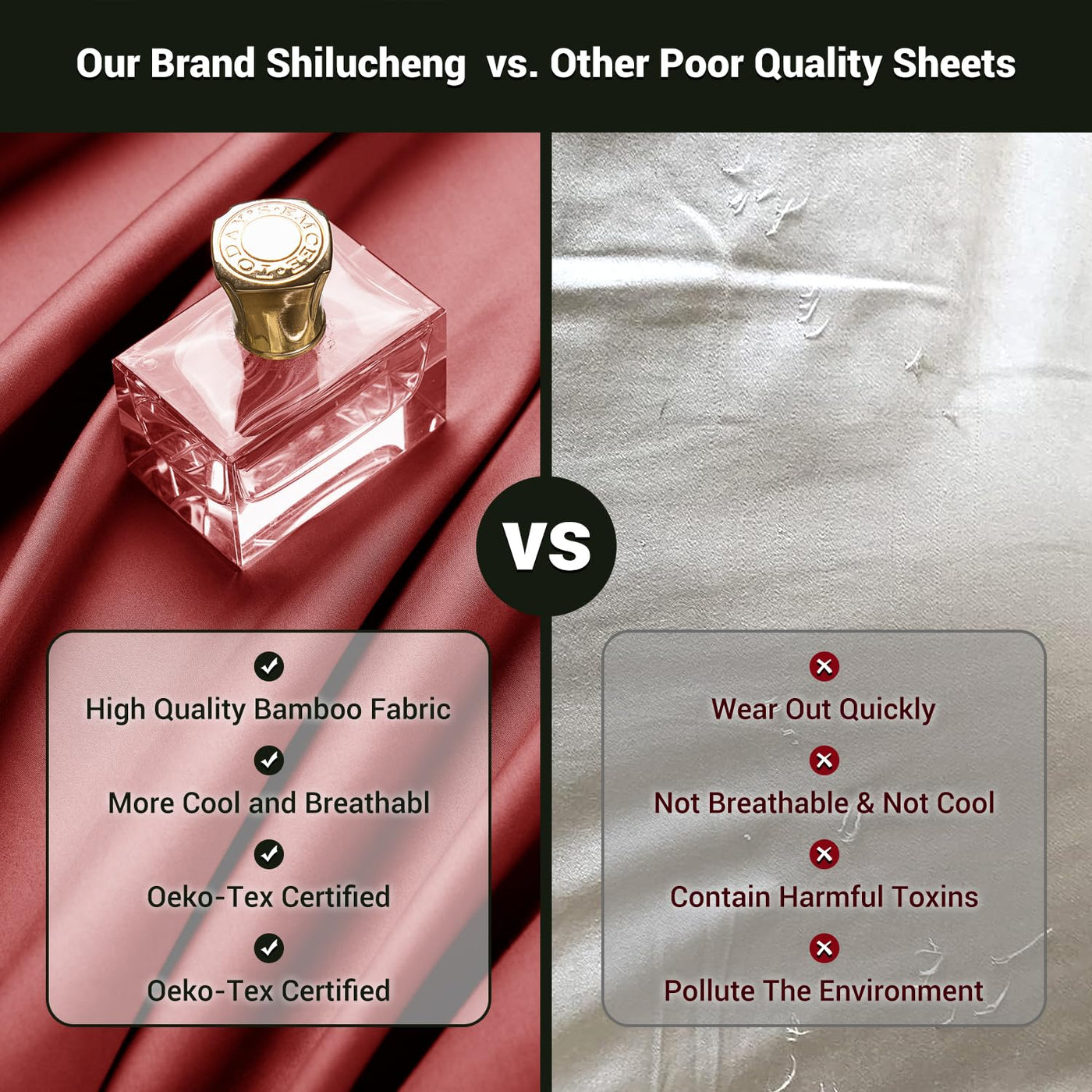 Shilucheng 4 Piece King Sheet Sets, Cooling Sheets, Blend Rayon Derived From Bamboo, Deep Pocket Up To 16', Breathable & Soft Bed Sheets, Hotel Silky Bedding Set, Burgundy