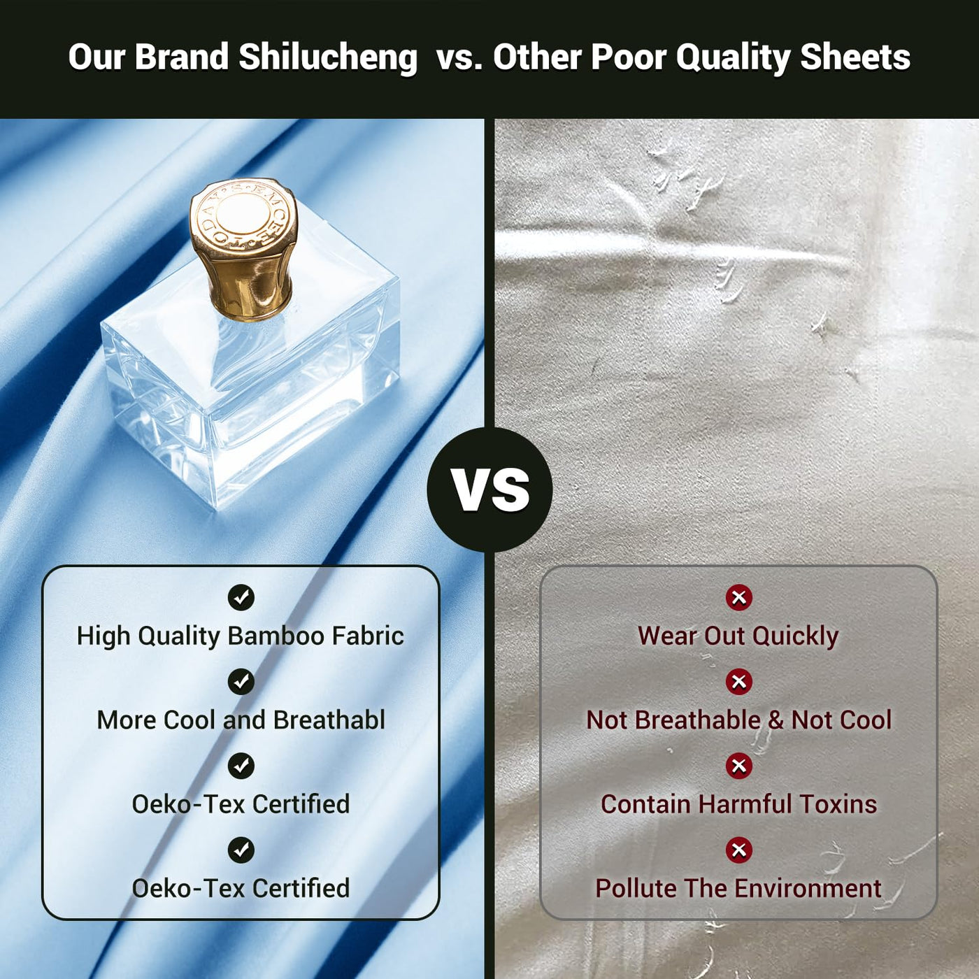 Shilucheng 4 Piece King Sheet Sets, Cooling Sheets, Blend Rayon Derived From Bamboo, Deep Pocket Up To 16', Breathable & Soft Bed Sheets, Hotel Silky Bedding Set, Lake Blue