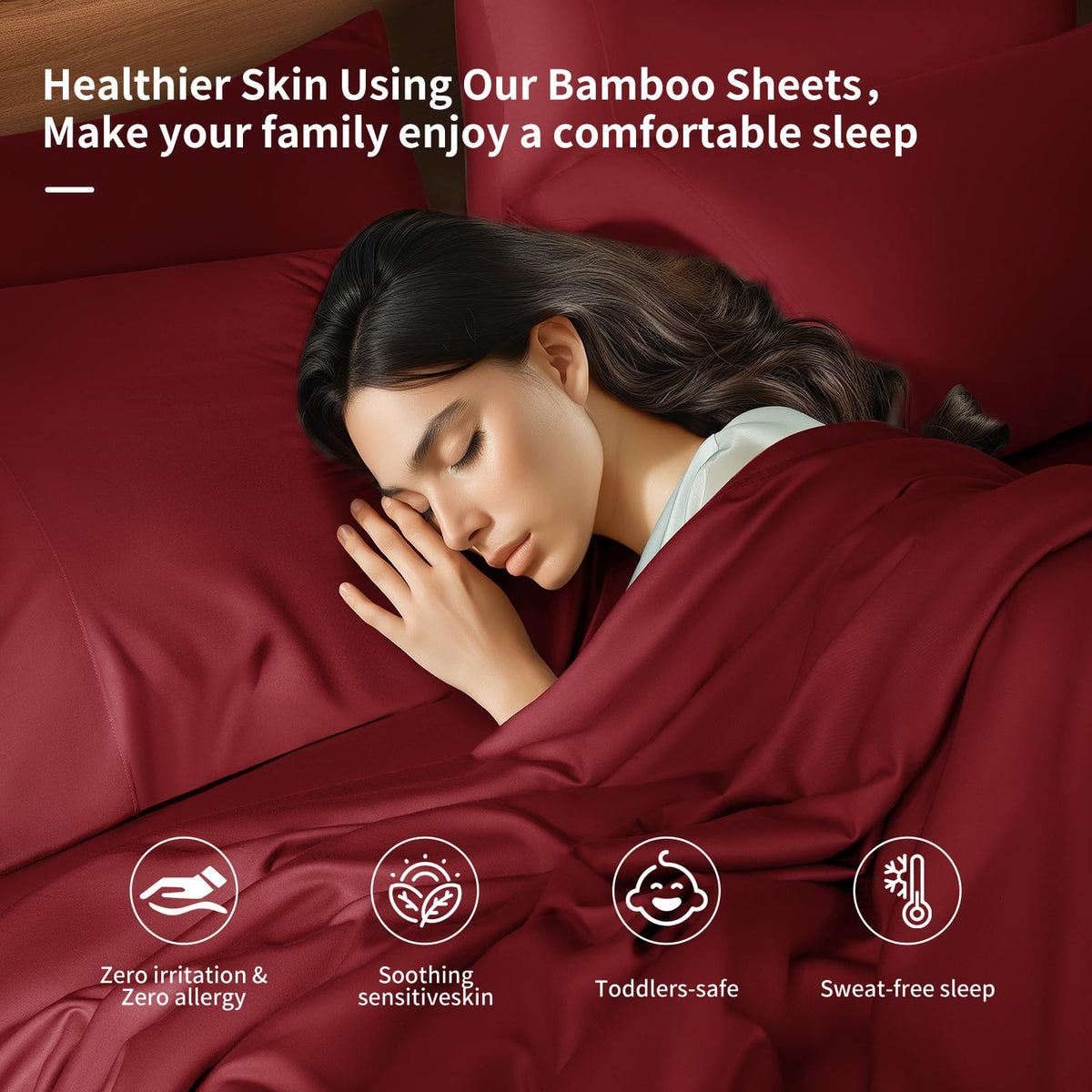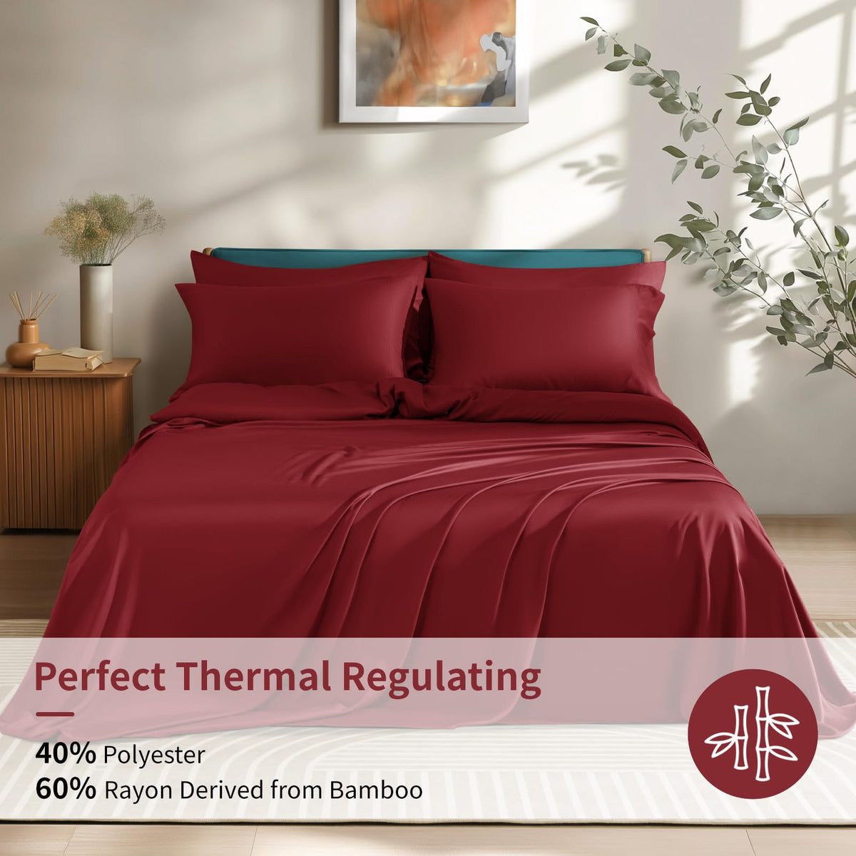 Shilucheng 6 Piece King Sheet Sets, Cooling Sheets, Blend Rayon Derived From Bamboo, Deep Pocket Up To 16', Breathable & Soft Bed Sheets, Hotel Silky Bedding Set, Burgundy
