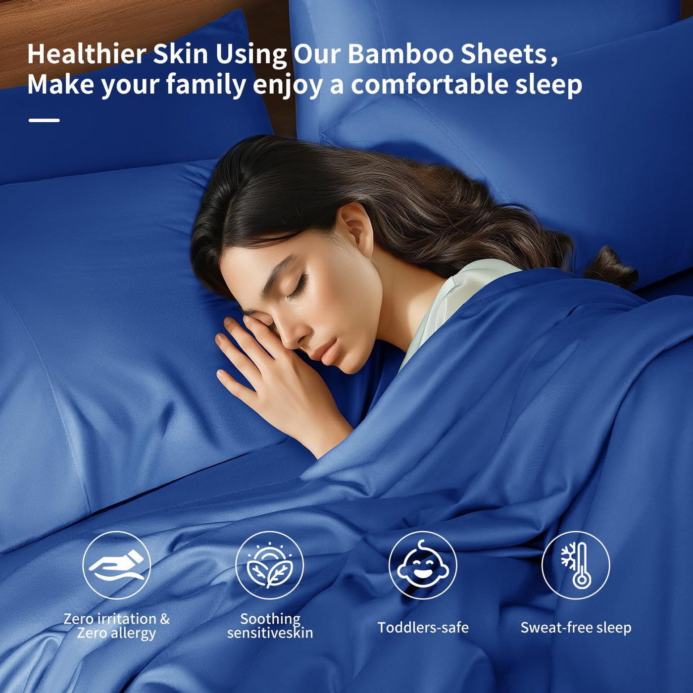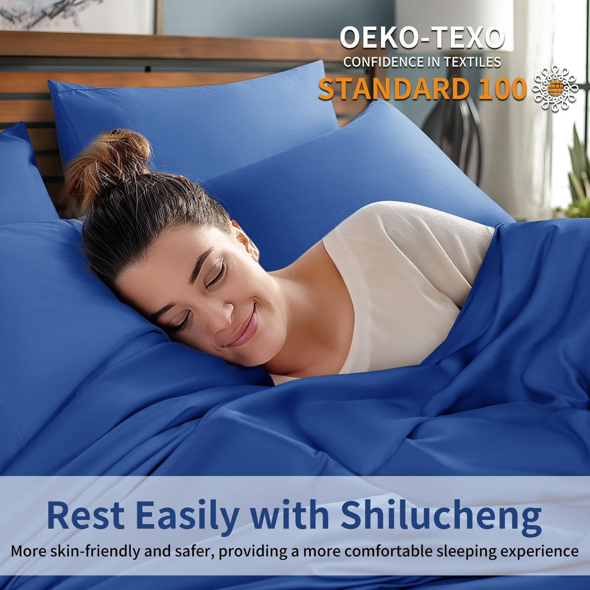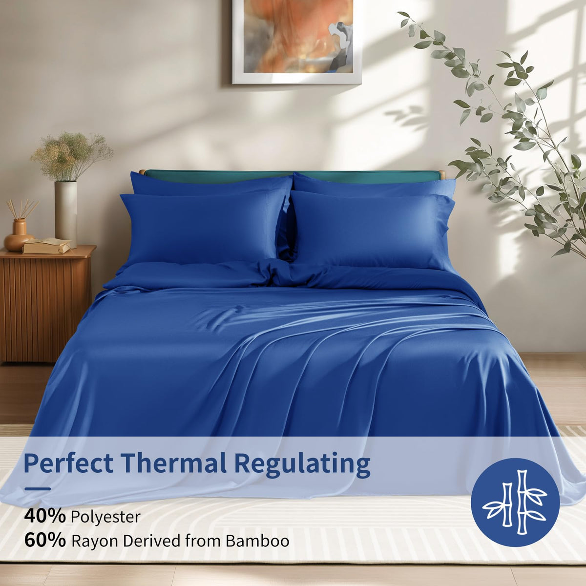 Shilucheng 6 Piece King Sheet Sets, Cooling Sheets, Blend Rayon Derived From Bamboo, Deep Pocket Up To 16', Breathable & Soft Bed Sheets, Hotel Silky Bedding Set, Navy Blue