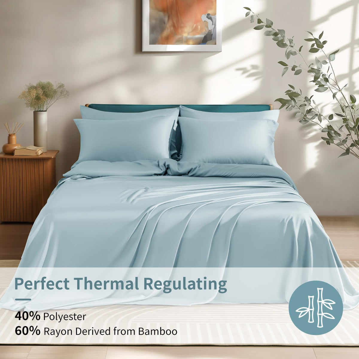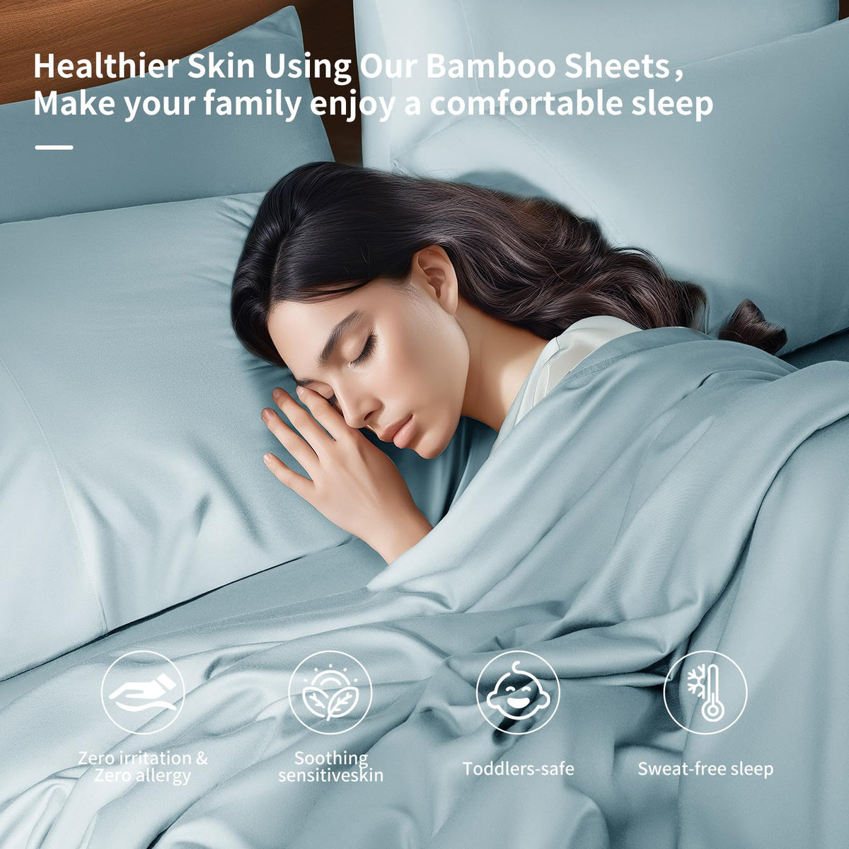 Shilucheng 6 Piece King Sheet Sets, Cooling Sheets, Blend Rayon Derived From Bamboo, Deep Pocket Up To 16', Breathable & Soft Bed Sheets, Hotel Silky Bedding Set, Spa Blue