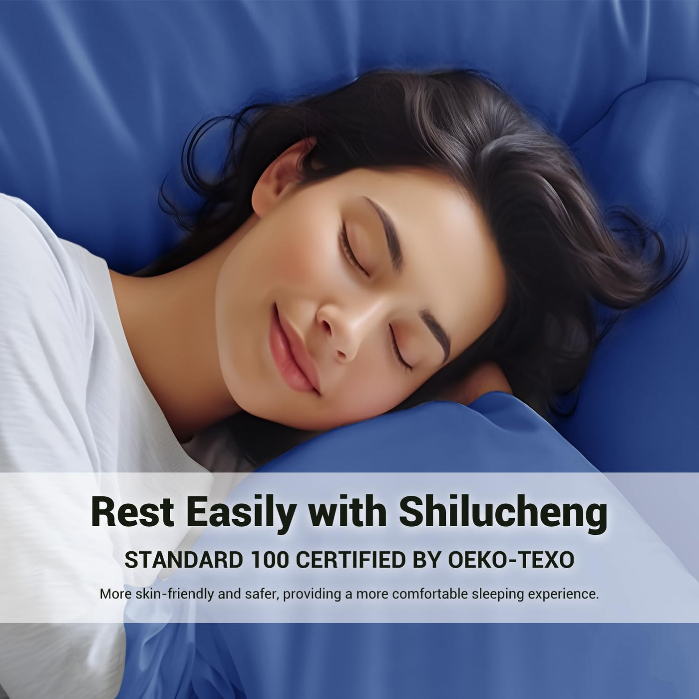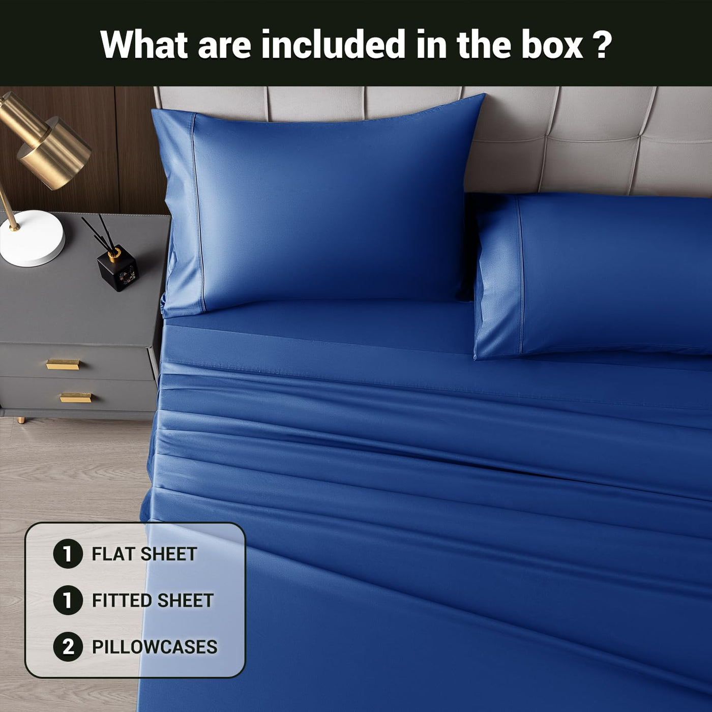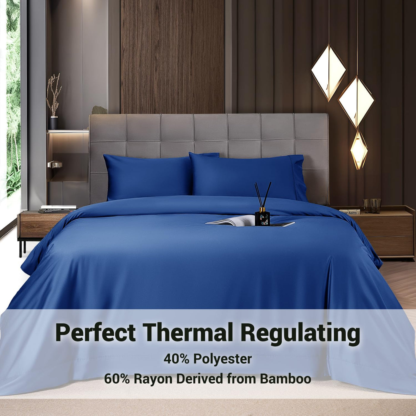 Shilucheng Cooling Breathable Bamboo_ Bed Sheets Set - 1800 Thread Count Super Silky Soft With 16 Inch Deep Pocket, 4 Piece (California King,Navy Blue)