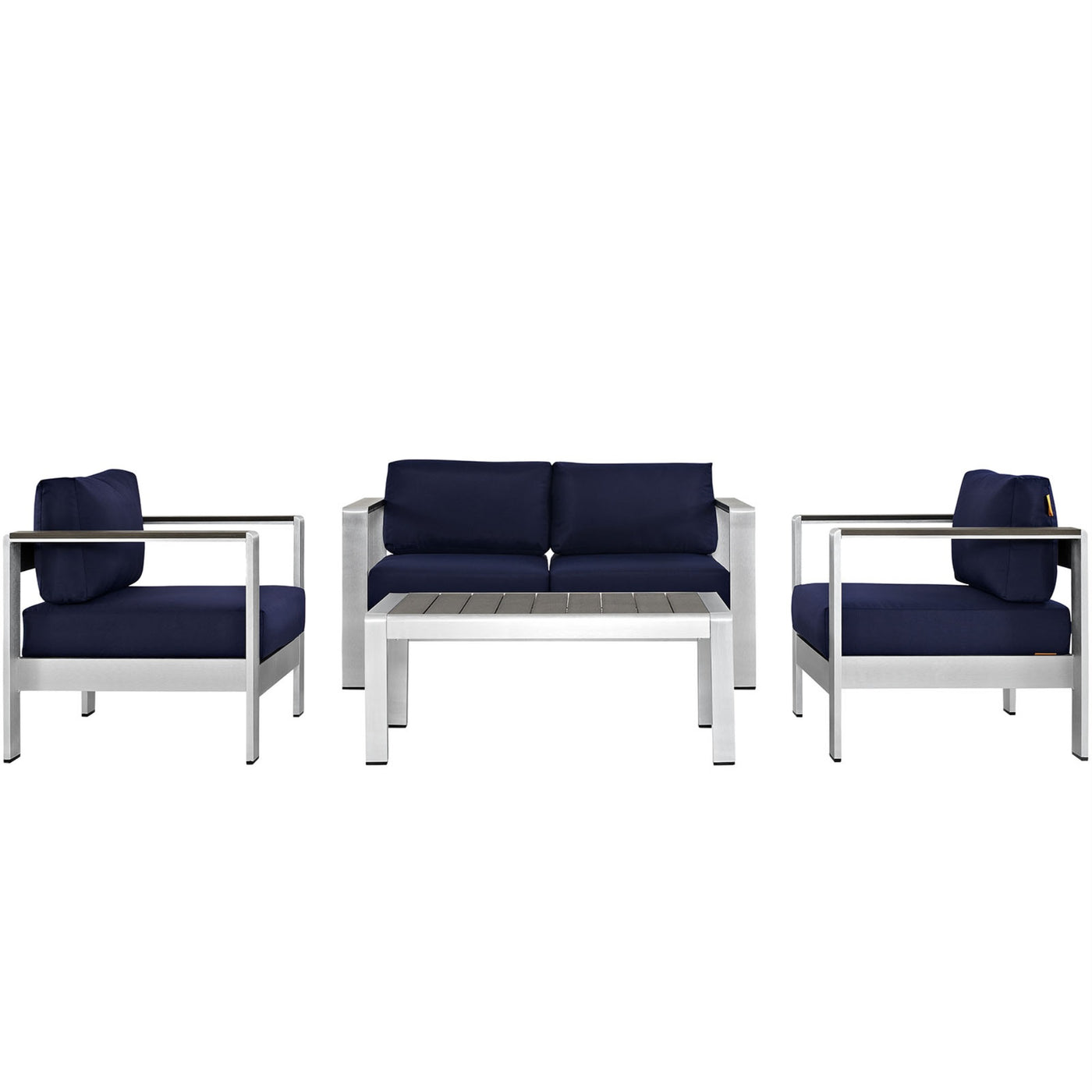 Shore Outdoor Patio Collection: Durable Aluminum Sectional Sofa Set - Silver Navy. Enhance your outdoor relaxation with this ele