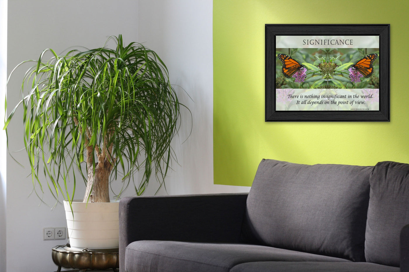 Unique and decorative, this significance 1 black framed print living room wall art will leave a lasting impression. Inspired by one of nature's most revered icons, this pretty butterfly inspired artwork will be a beautiful and special addition to your room's decor. This print is a visual expression that allows you to decorate your space in style. Reproduced for you on paper, this hanging accent will be a trendy and fashionable way to dress your walls. some up to date fashion and decoration. Utilize this opportunity to create a focal point in the room with this wonderful wall decor option. 10' H x 14' W x 1' D