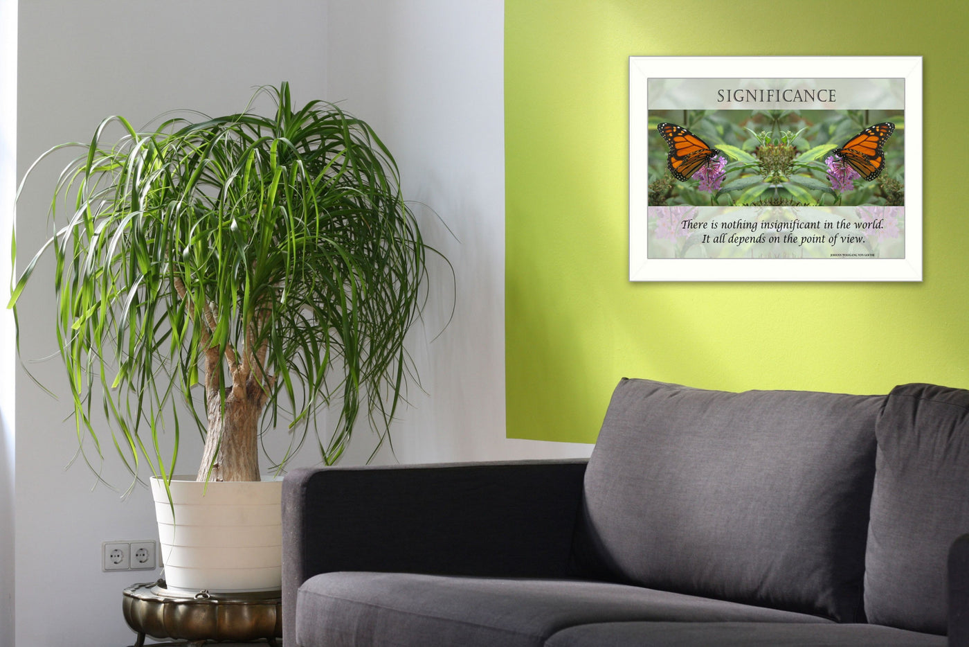 This significance 2 white framed print living room wall art will add a beautiful decorative accent to your decor. This butterfly inspired art will be a great addition to your space. This print is a visual artistic expression that allows you to decorate your space in style. Reproduced for you on paper, this hanging accent will be a trendy and fashionable way to dress your walls. Adding this hanging wall to make your room feel more finished and attractive. create a focal point in the room with this fabulous wall decor option. 10' H x 14' W x 1' D