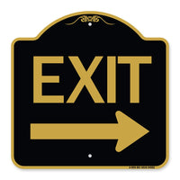 Signmission Designer Series Sign - Exit With Right Arrow | Black & Gold 18' X 18' Heavy-Gauge Aluminum Architectural Sign | Pr