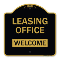 Signmission Designer Series Sign - Leasing Office, Welcome | Black & Gold 18' X 18' Heavy-Gauge Aluminum Architectural Sign |