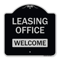 Signmission Designer Series Sign - Leasing Office, Welcome | Black & Silver 18' X 18' Heavy-Gauge Aluminum Architectural Sign