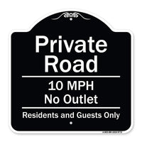 Signmission Designer Series Sign - Private Road 10 Mph No Outlet Residents And Guests Only Black & White 18' X 18' Heavy-Gauge