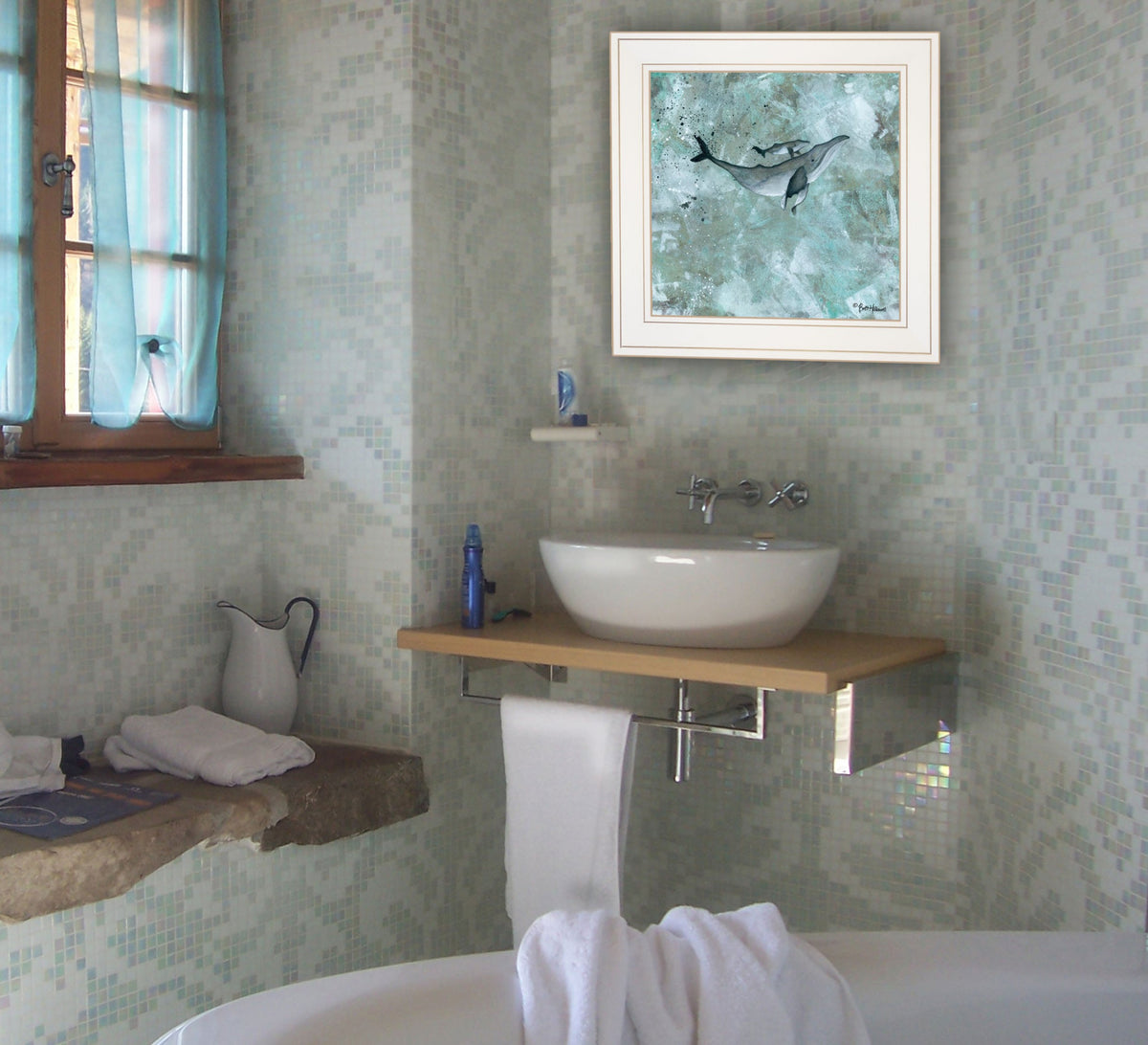 This Simplicity Blue Gray Humpback Whale white framed print wall art will add a beautiful decorative accent to your decor. Update your walls with this great abstract background sea life art. This print is a visual artistic expression that allows you to decorate your space in Reproduced for you on paper, this hanging accent will be a trendy and fashionable way to dress your walls. Hang on your wall to add up to some date fashion and Instantly your space. with this art that brings Color and dimension to your walls. 15' H x 15' W x 1' D.