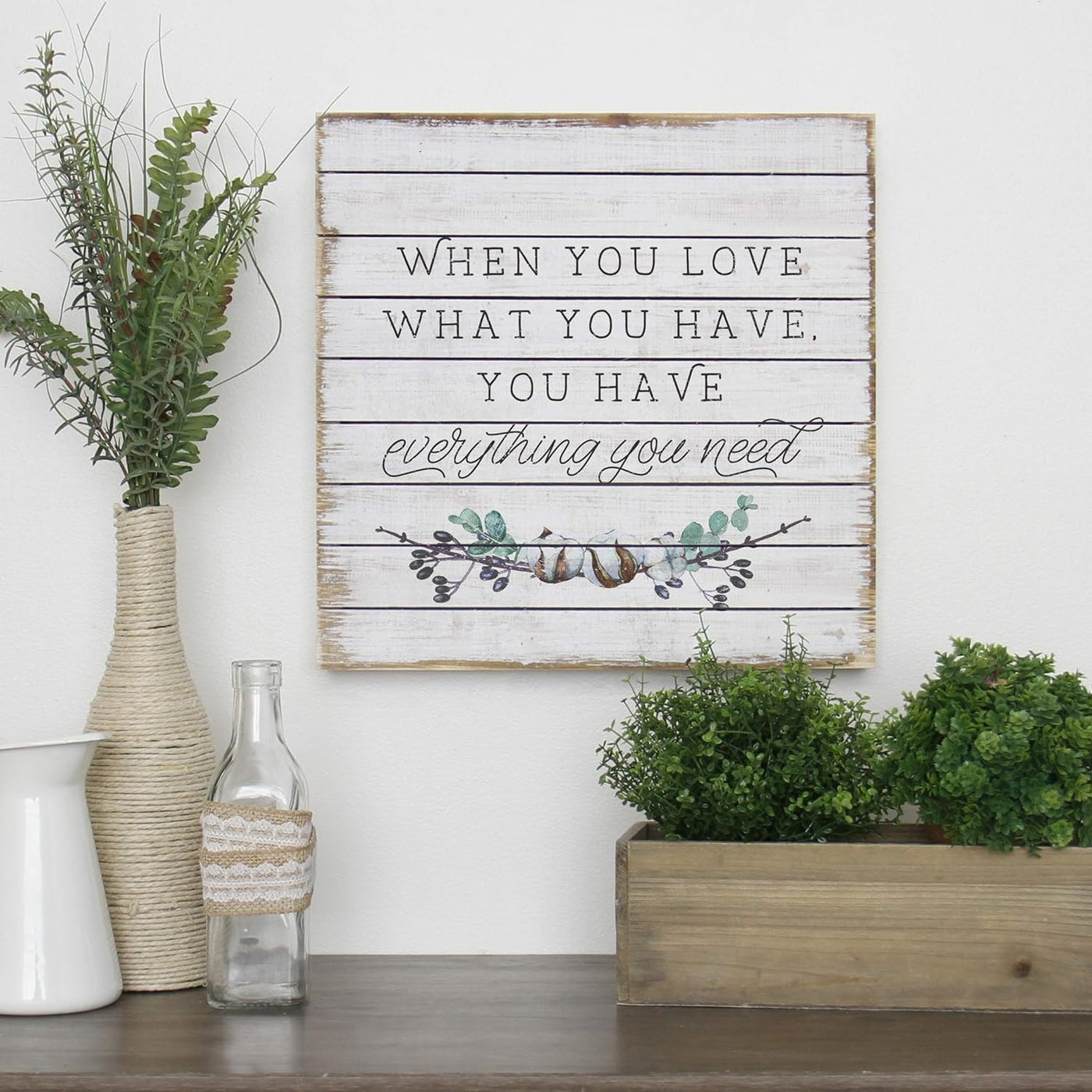 Each Perfect Pallet Sign Is Assembled Using Natural Cedar Wood Slats. Rustic Sign Reads 'When You Love What You Have, You Have Everything You Need.' Weathered Distressing Mixed With An Inspirational Design Creates Unique Rustic Decor That Is Simple Yet Refined. Easy To Hang, Or Sit Sign On Your Favorite Shelf. Made Using Natural Wood, No Two Pallet Signs Are Alike. Measures Approximately 14 X 14 X 2 Inches. With Over 100 Designs In This Category, Sincere Surroundings Has A Perfect Pallet For Every Space.