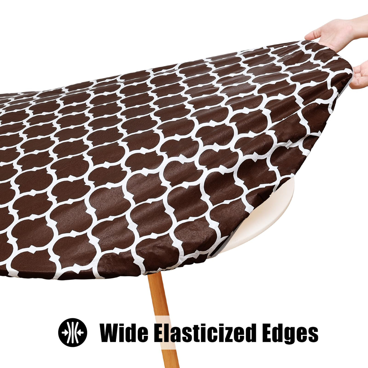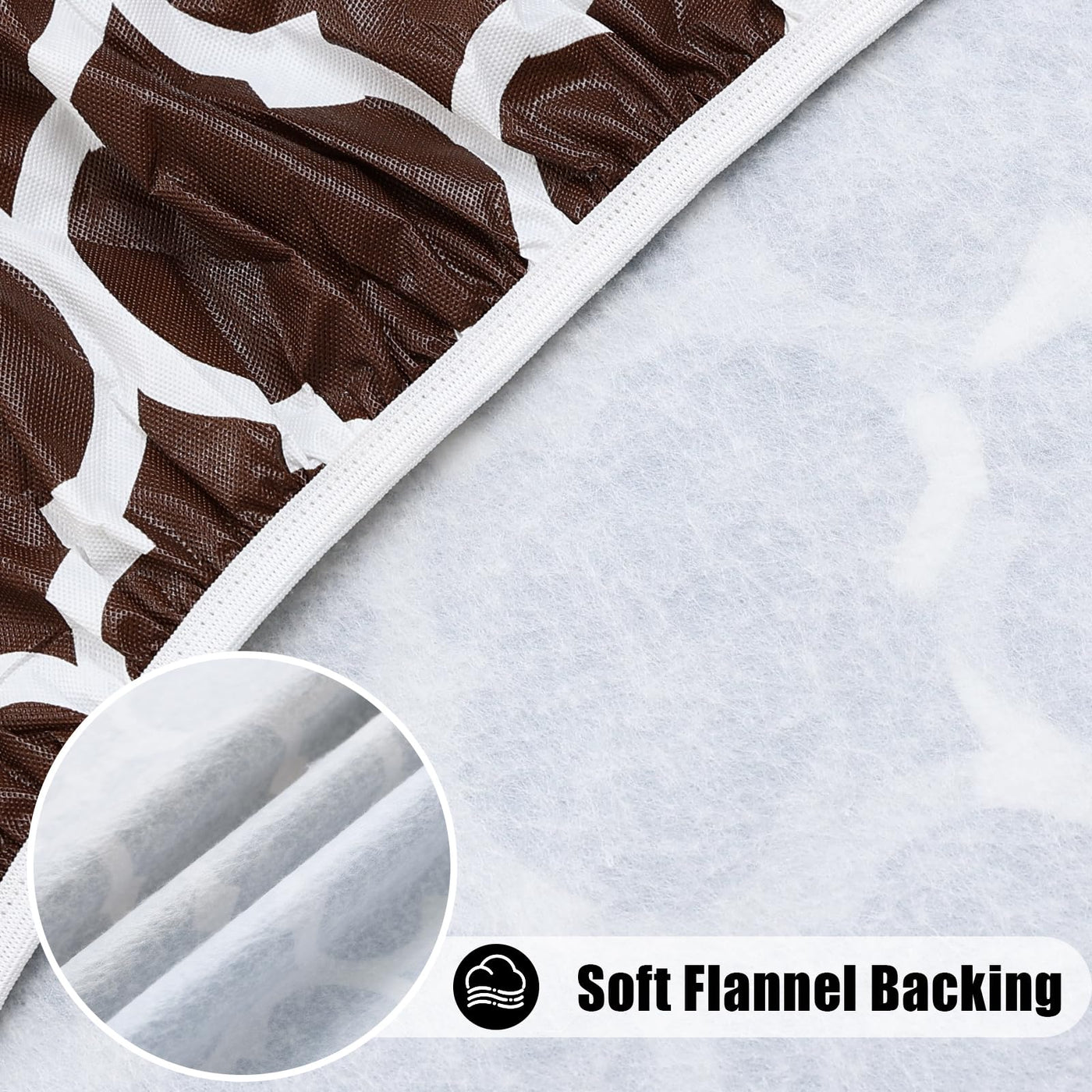 Smiry Round Picnic Tablecloth, Waterproof Elastic Fitted Table Covers For 57' - 68' Tables, Wipeable Flannel Backed Vinyl Tablecloths For Camping, Indoor, Outdoor, Coffee & White