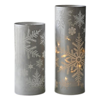 Add A Rustic Touch To Your Home This Holiday Season With This Set Of Two Glass Candle Holders. Featuring Two Sizes, It'S Ideal For Contemporary Or Transitional Holiday Decor. The Traditional Snowflake Design In Deep Gray Tones Creates A Memorable Display. Illuminate The Set With Real Wax Or Led Candles, Fitting 2' Or 3' Votive Or Pillar Candles. Product Features:. Glass Candle Holder. Comes In Two Assorted Sizes. Accented With Snowflakes In A Deep Gray Tone. Fits 2' Or 3' Votive Or Pillar Candle - Not Included. Can Be Used With Real Wax Or Led Candles - Not Included. For Indoor Use Only Dimensions:. Large: 9.5' High X 3' Diameter. Small: 7.5' High X 3' Diameter. Material(S): Glass Note:Set Incudes 1 Of Each Size Shown For A Total Of 2 Pieces